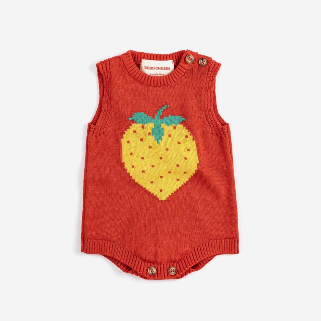 [Coming Soon] Bobo Choses :: Pixel Strawberry Knitted Romper-Baby