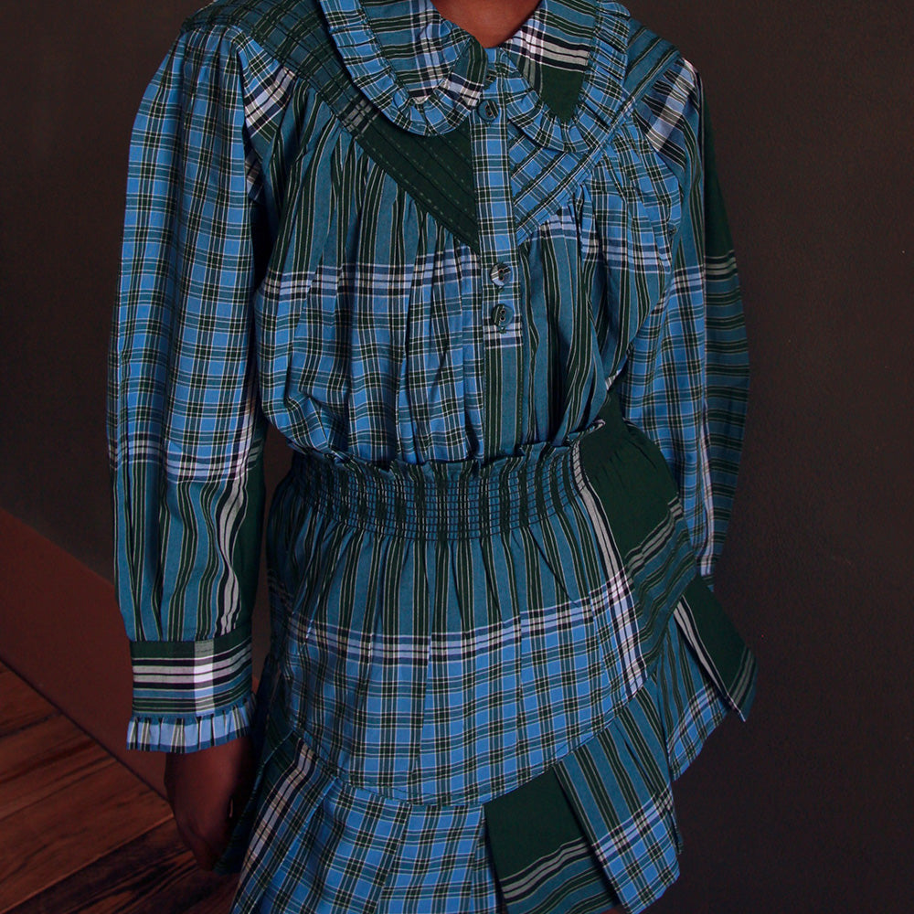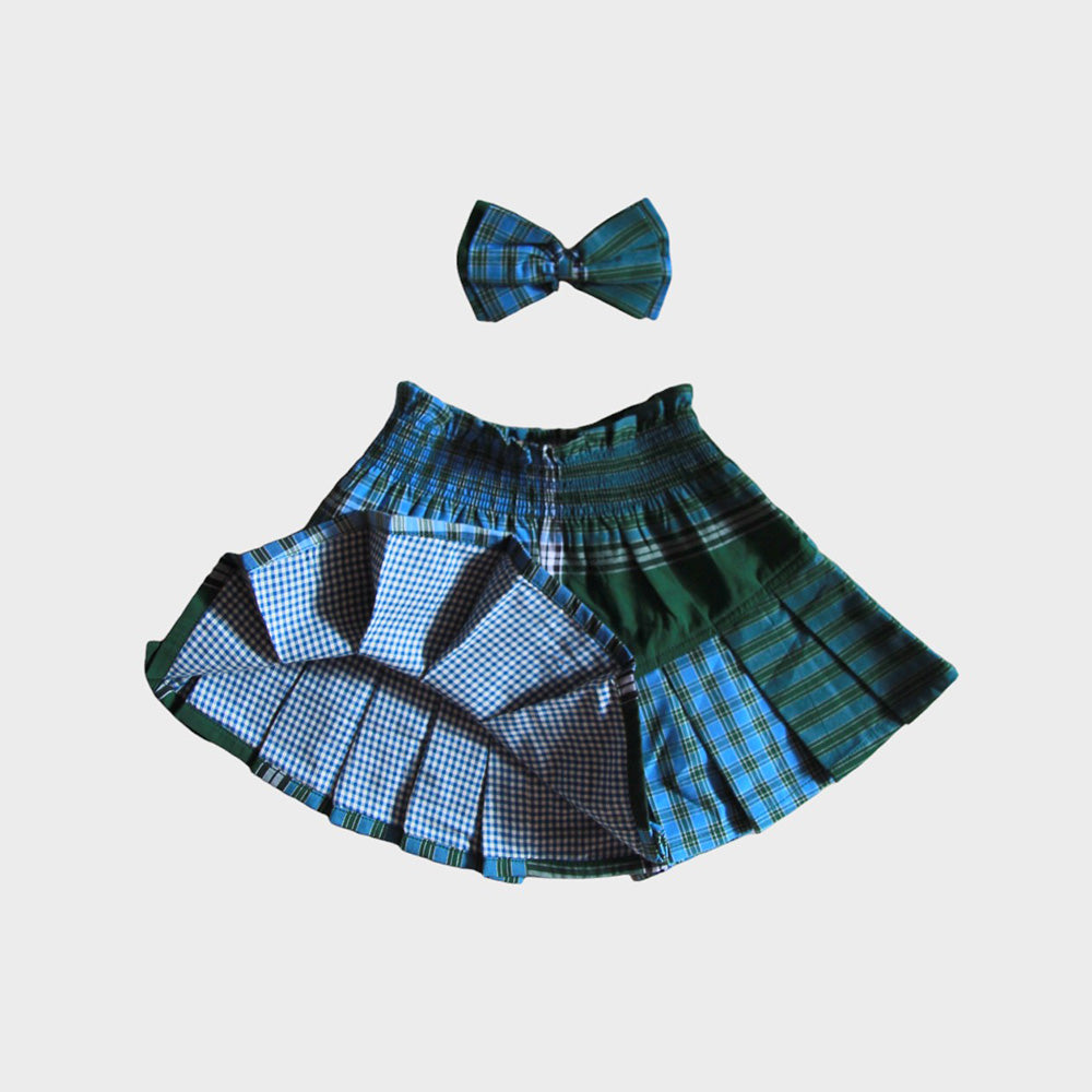Bonjour Diary - Pleated Skirt With Hair Clip Lungi Check