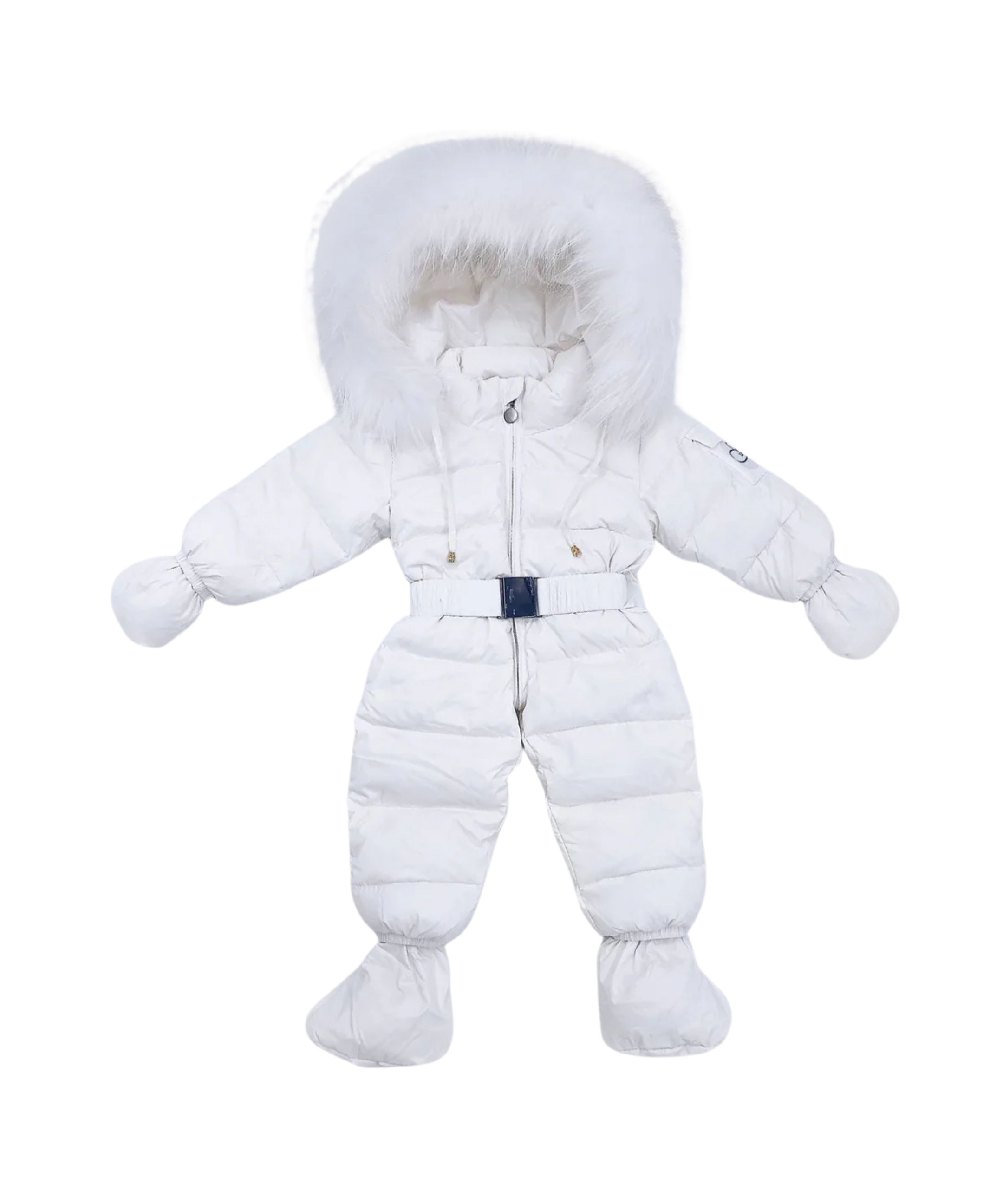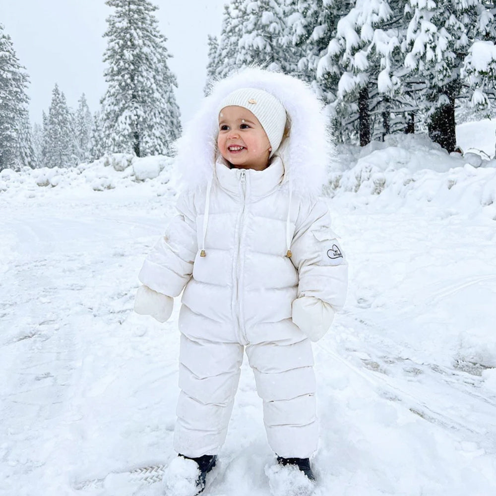 Mi Loves - Luxurious Racoon Fur Trim Snowsuit White With White Fur