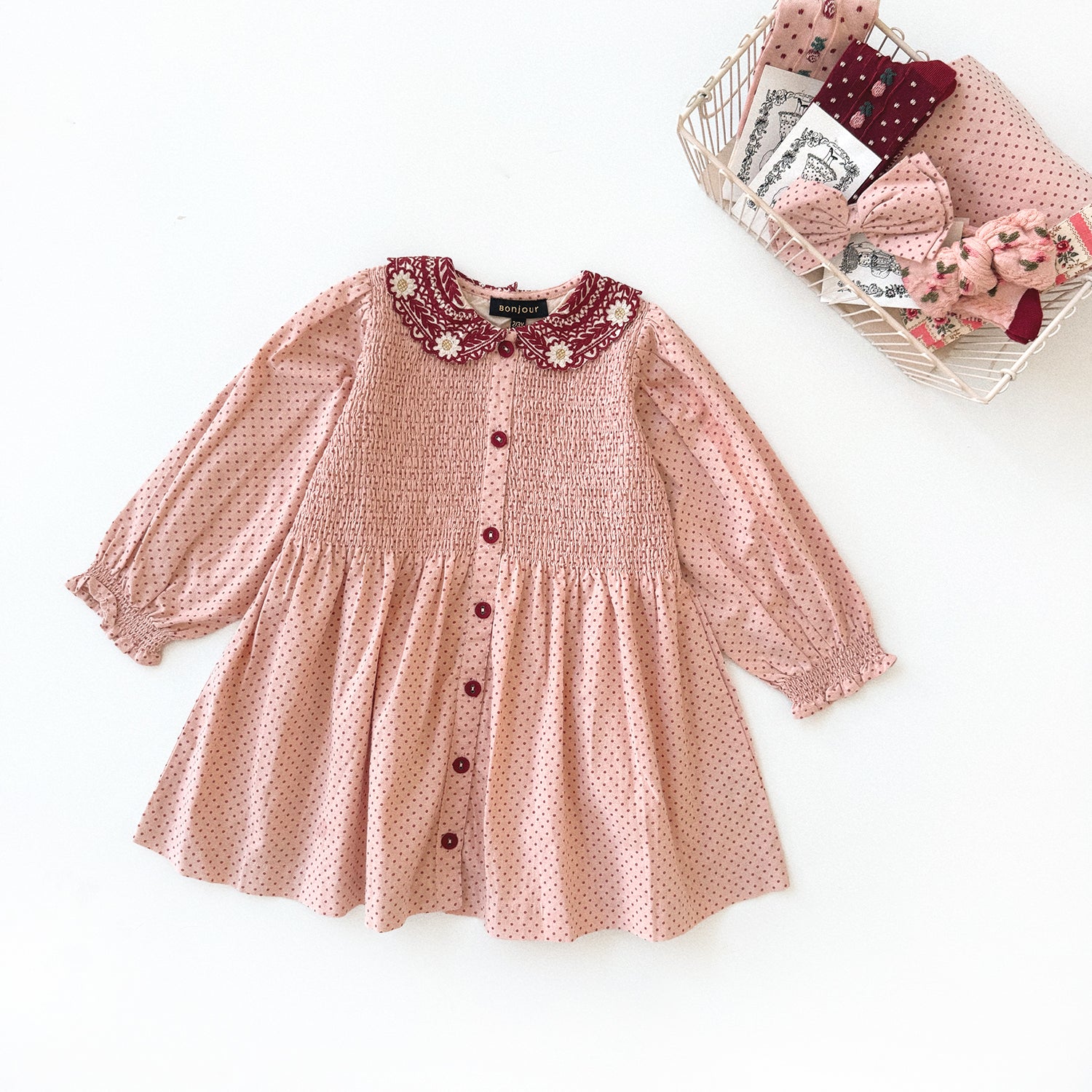 Bonjour Diary :: Embroidered Shirt Pink Dot Print