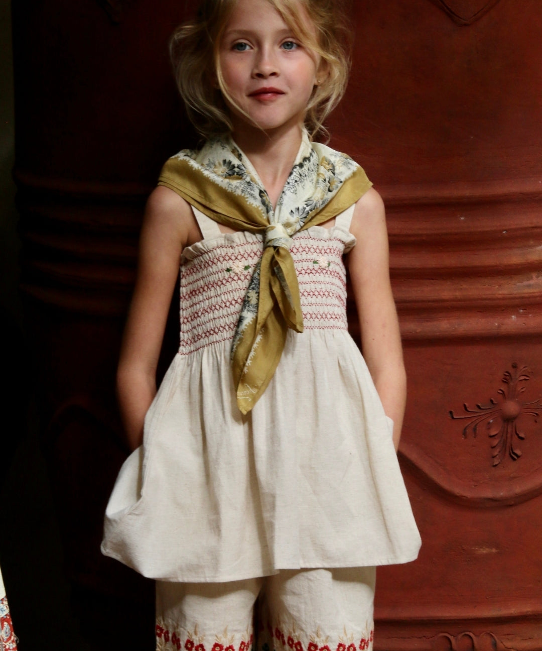 Bonjour Diary - Handsmock Dress Natural Cotton Flex