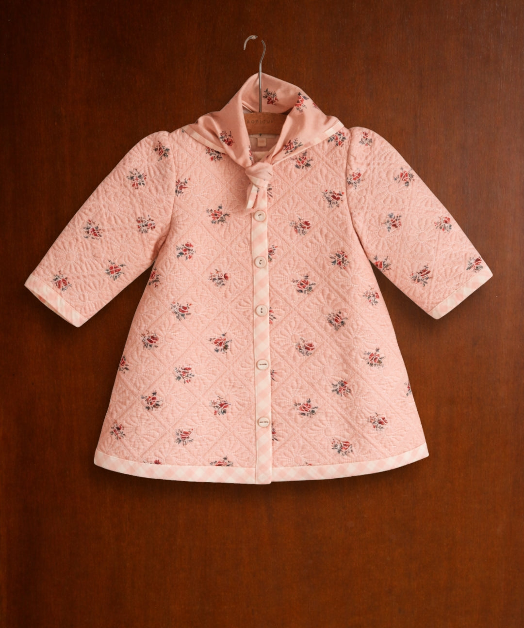 Bonjour Diary - Reversible Dress Coat With Triangle Scarf Coat Pink Garden Flowers Print