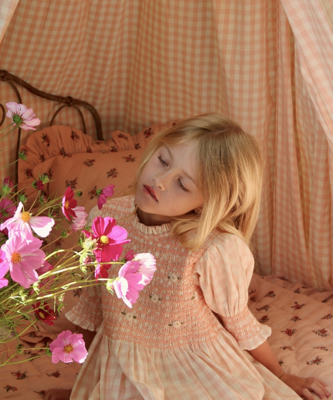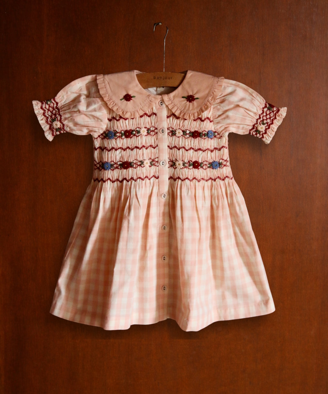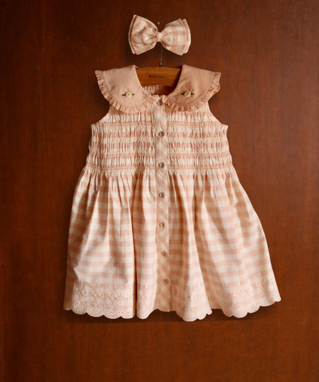 Bonjour Diary - Handsmock Dress Pink Check Voile