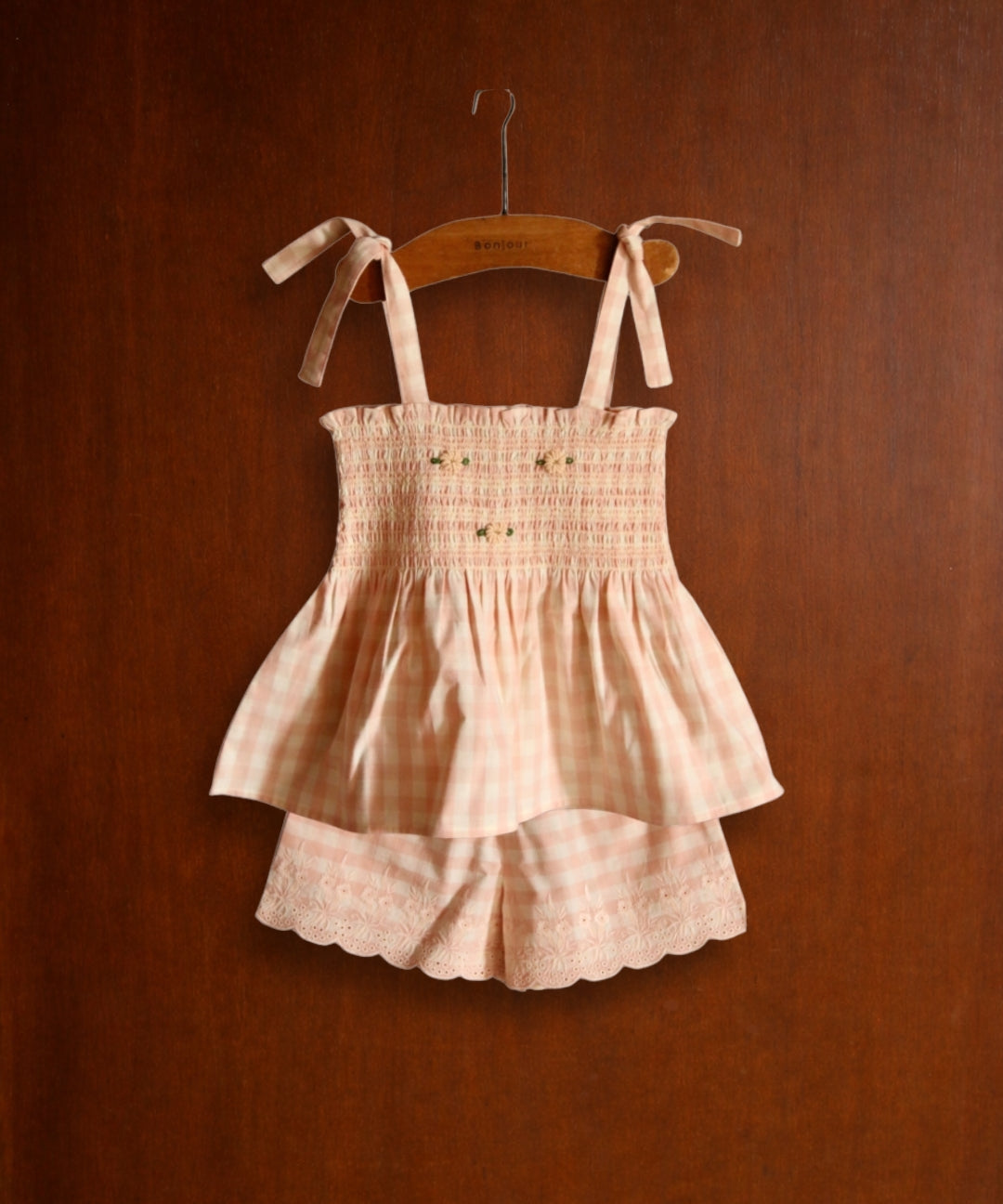 Bonjour Diary - Embroidered Short & Top Set Pink Vichy