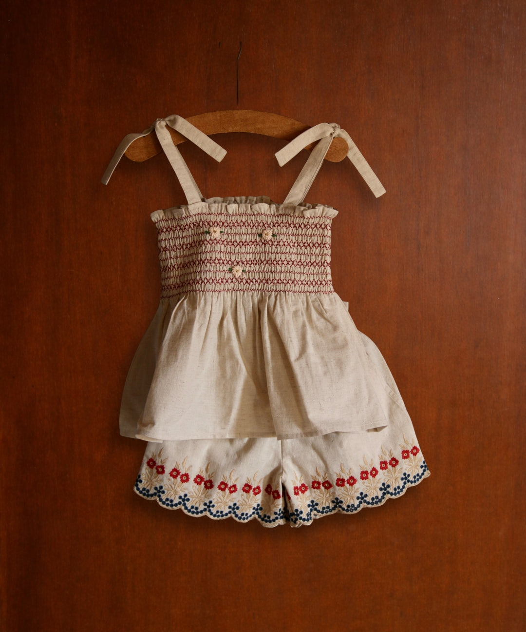 Bonjour Diary - Embroidered Short & Top Set Natural Cotton Flex