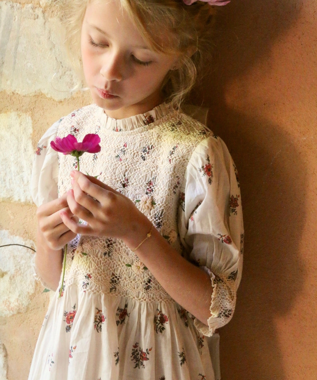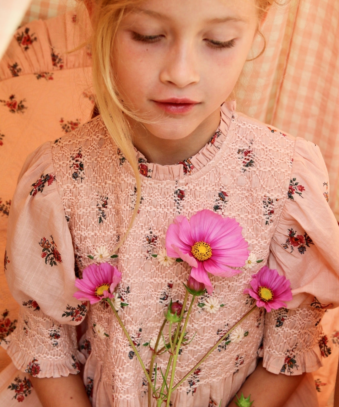 Bonjour Diary - Handsmocks Blouse Pink Garden Flowers Print