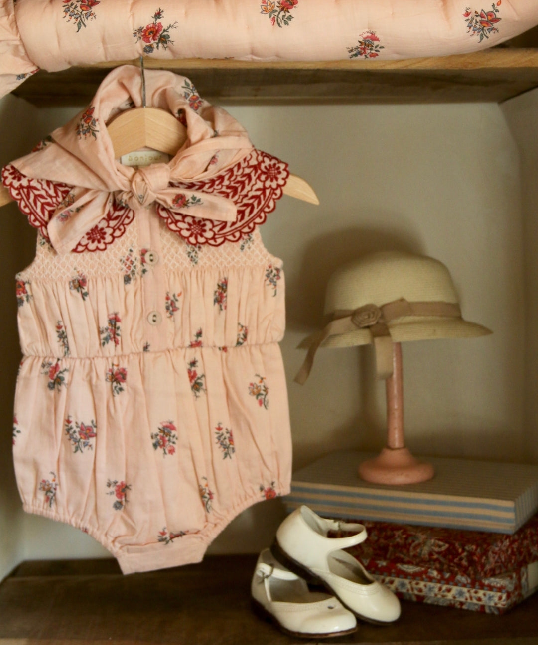 Bonjour Diary - Romper With Scarf Pink Garden Flowers Print