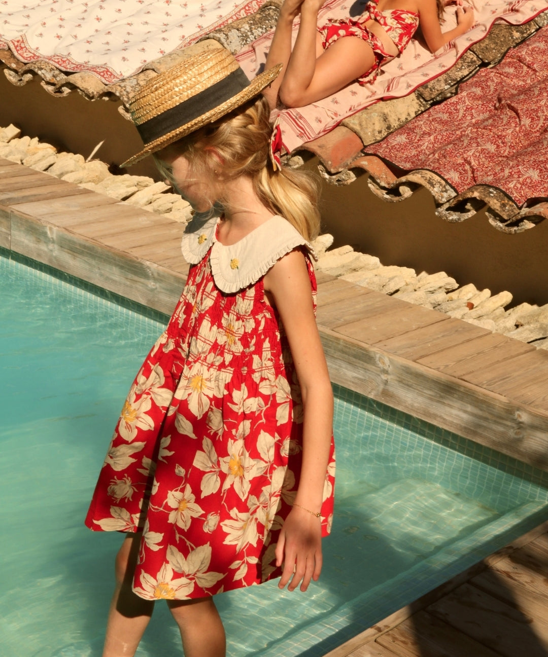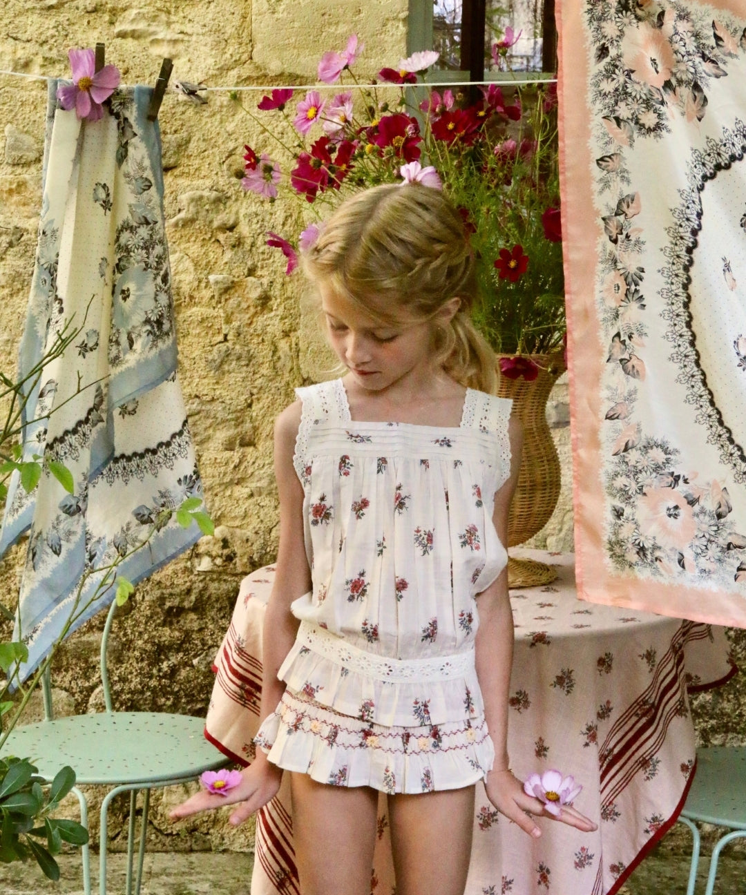Bonjour Diary - Tunique With Hair Clip Garden Flowers Print - Cotton Slub Voile