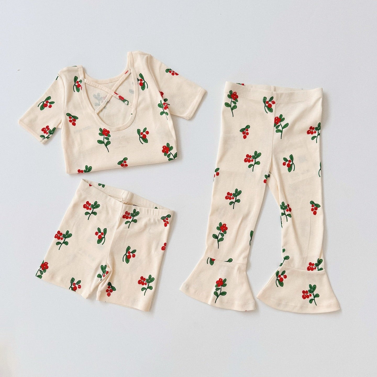 Mini Rodini - Lingonberries Aop Flared Trousers Off White