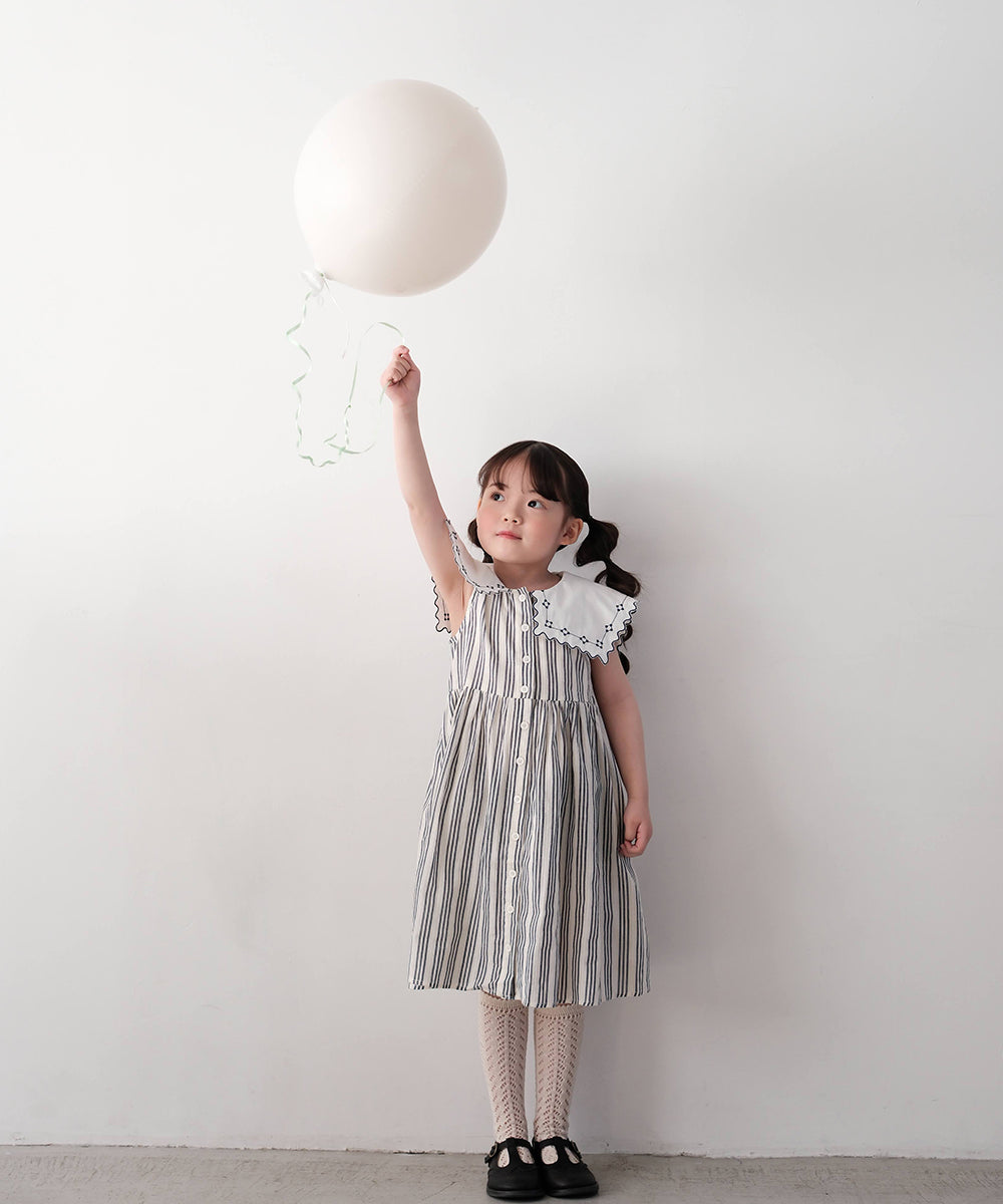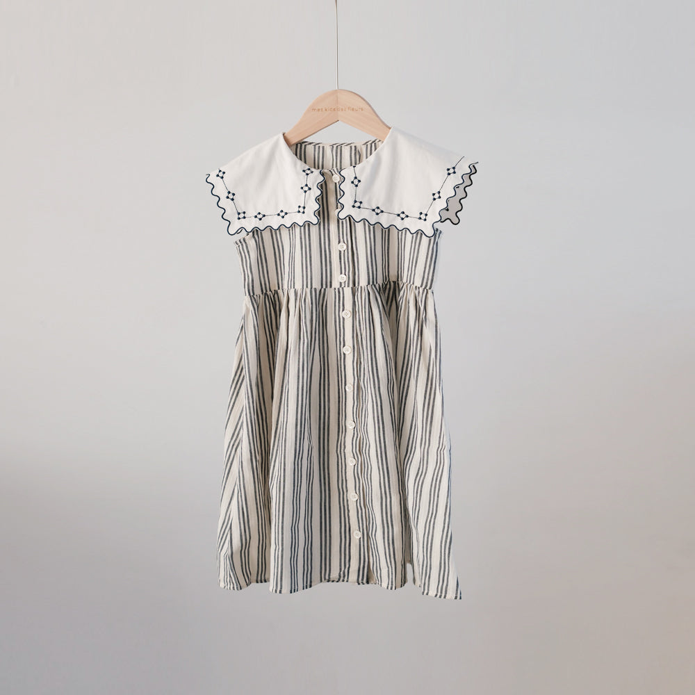 Mes Kids Des Fleurs - Striped Dress Grey