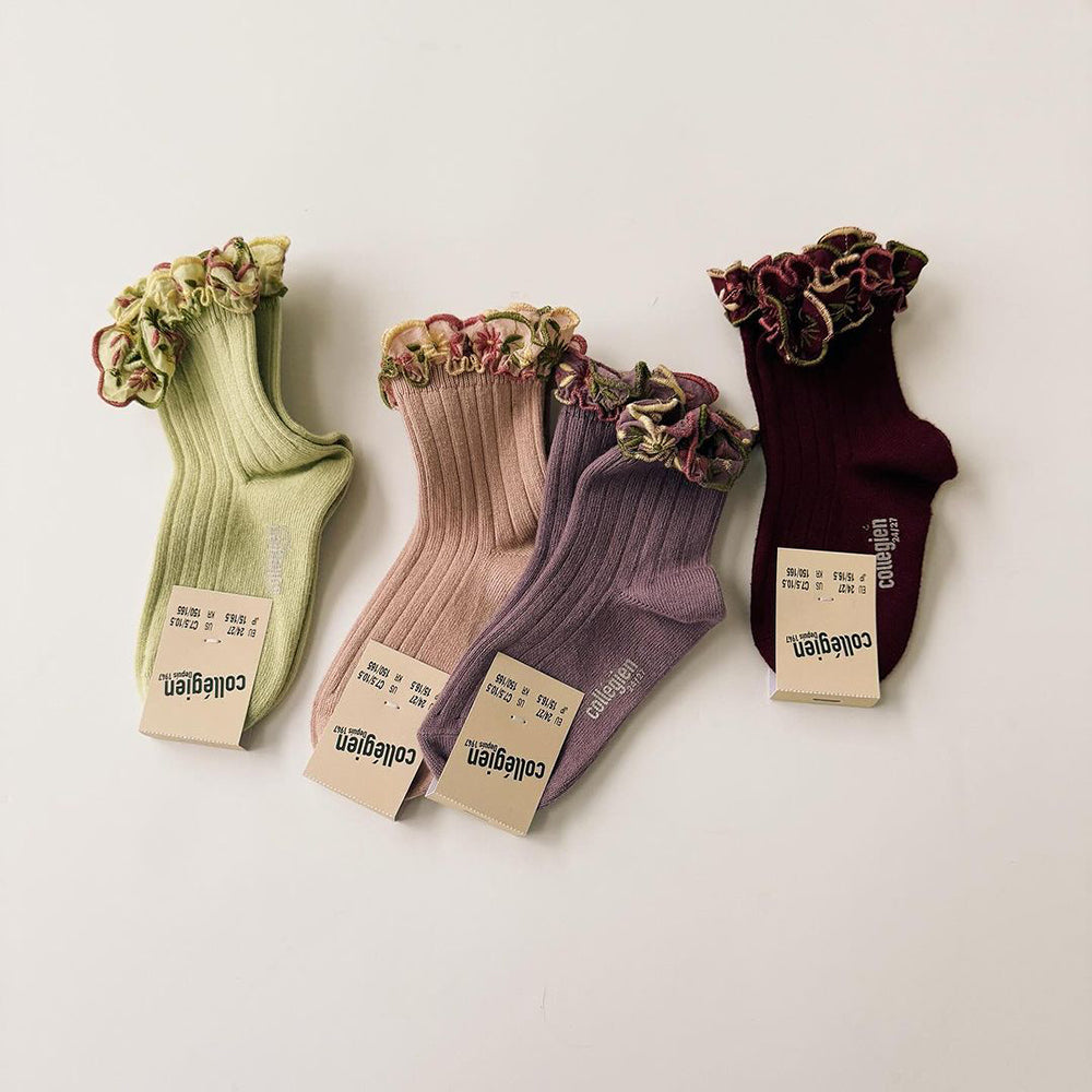 Collegien - Anemone Embroidered Ruffle Ribbed Ankle Socks 251