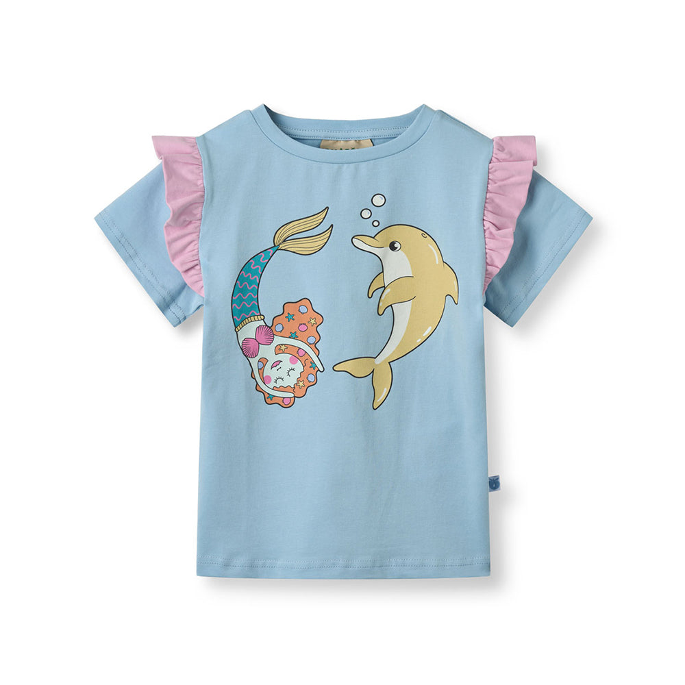Smafolk - T-Shirt With Mermaid And Dolphin Soft Sky