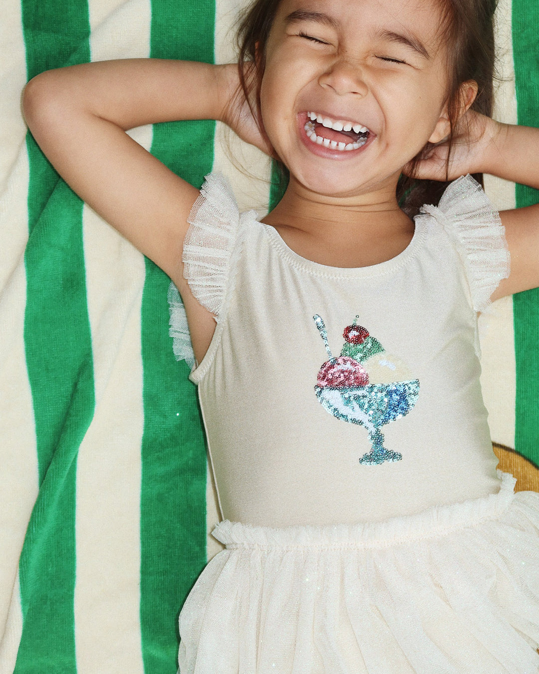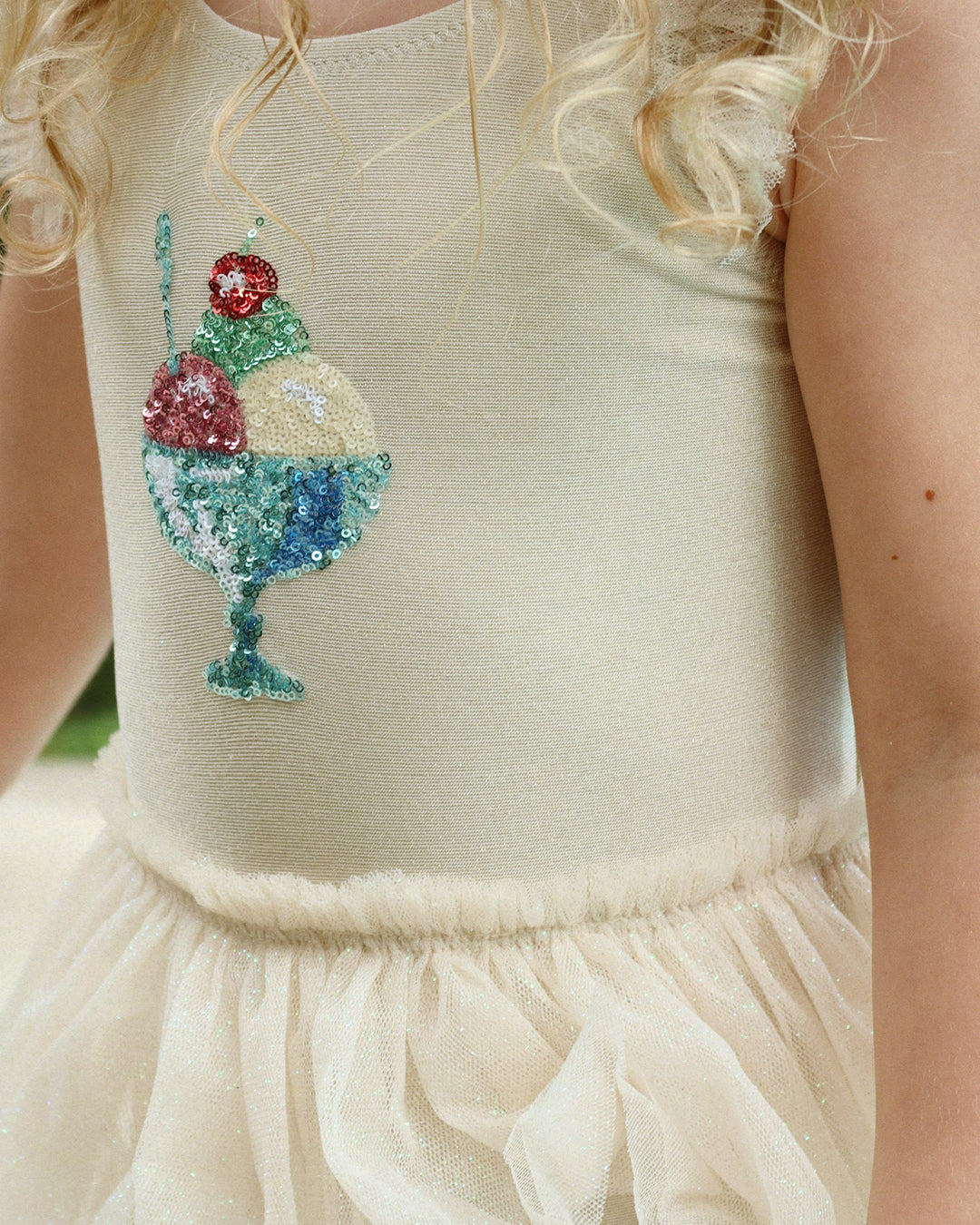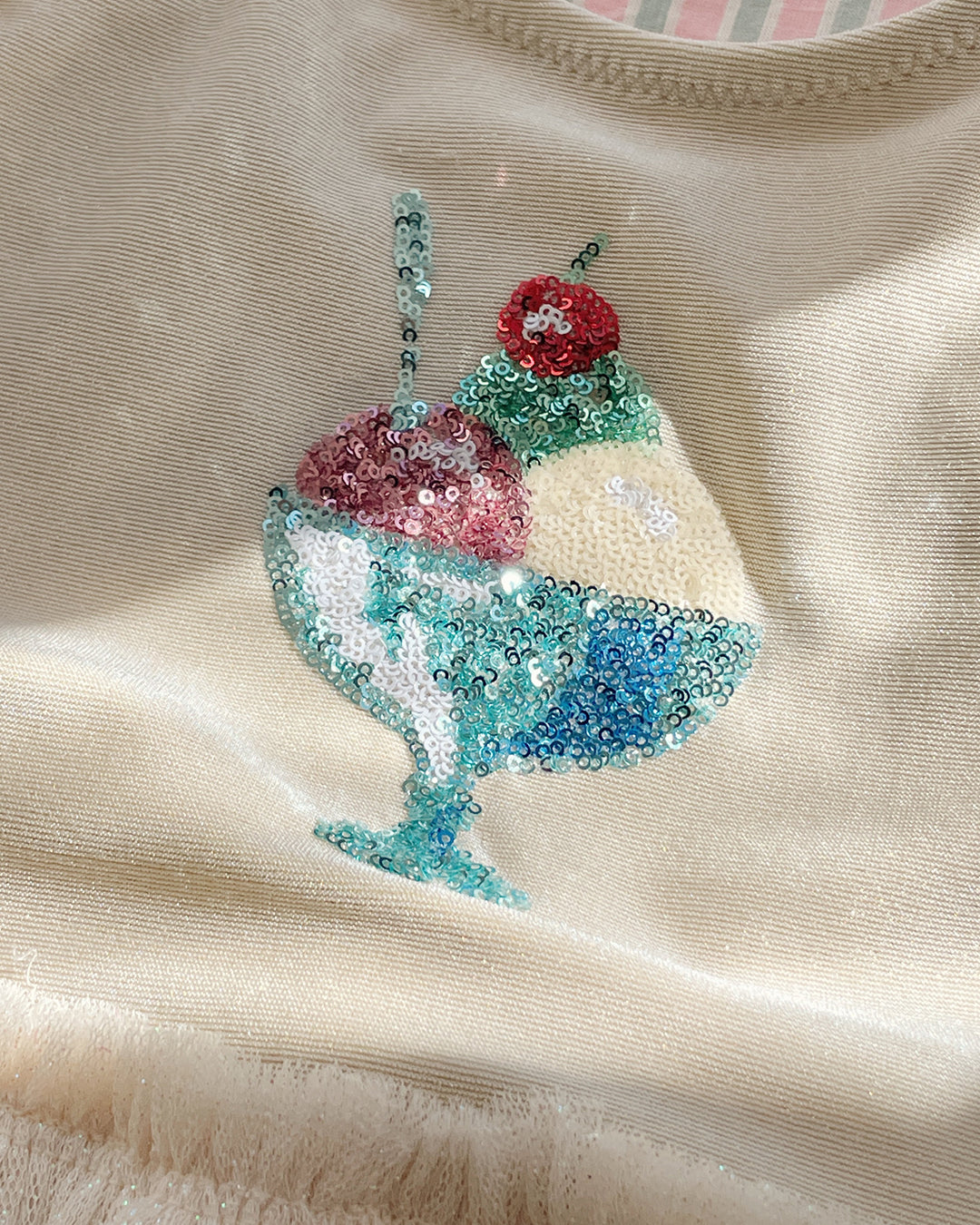 · Sparkly ice cream motif adds a playful, dreamy touch