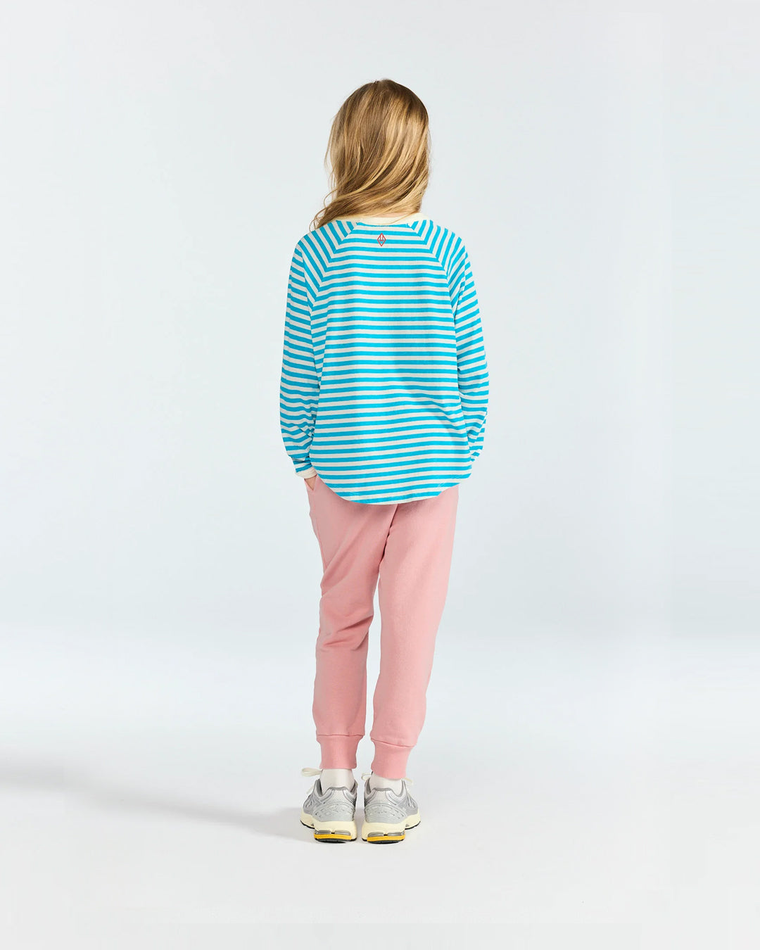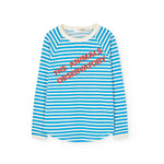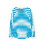 · Soft cotton long-sleeve T-shirt with blue and white stripe pattern