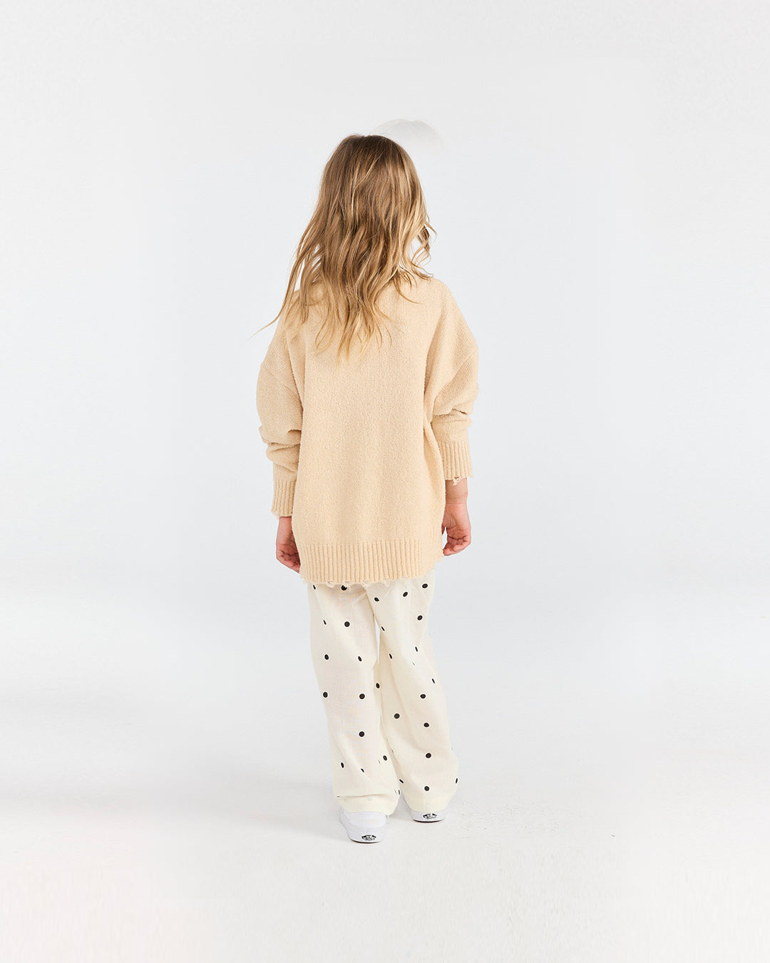 · Lightweight pants in a soft cream tone with all-over polka dot print