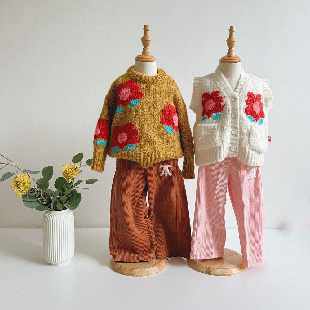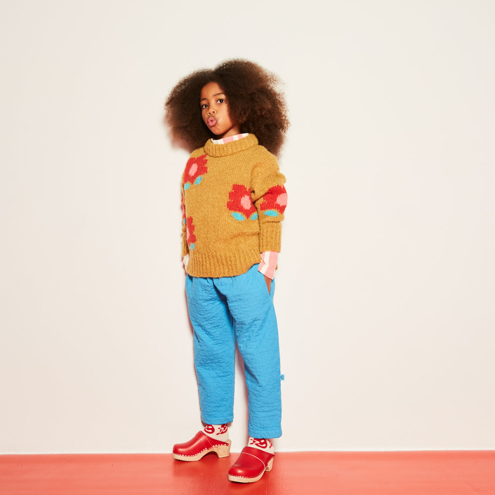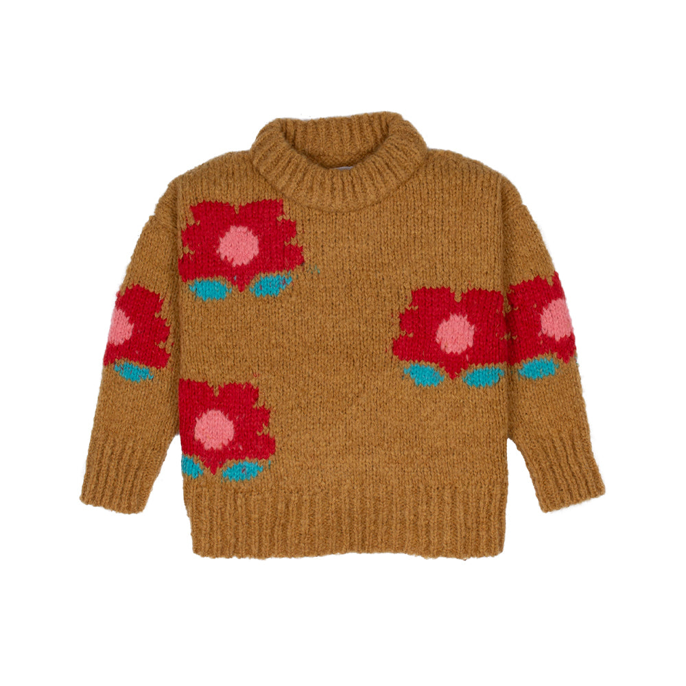 · Chunky soft knit jumper with playful intarsia flower artwork