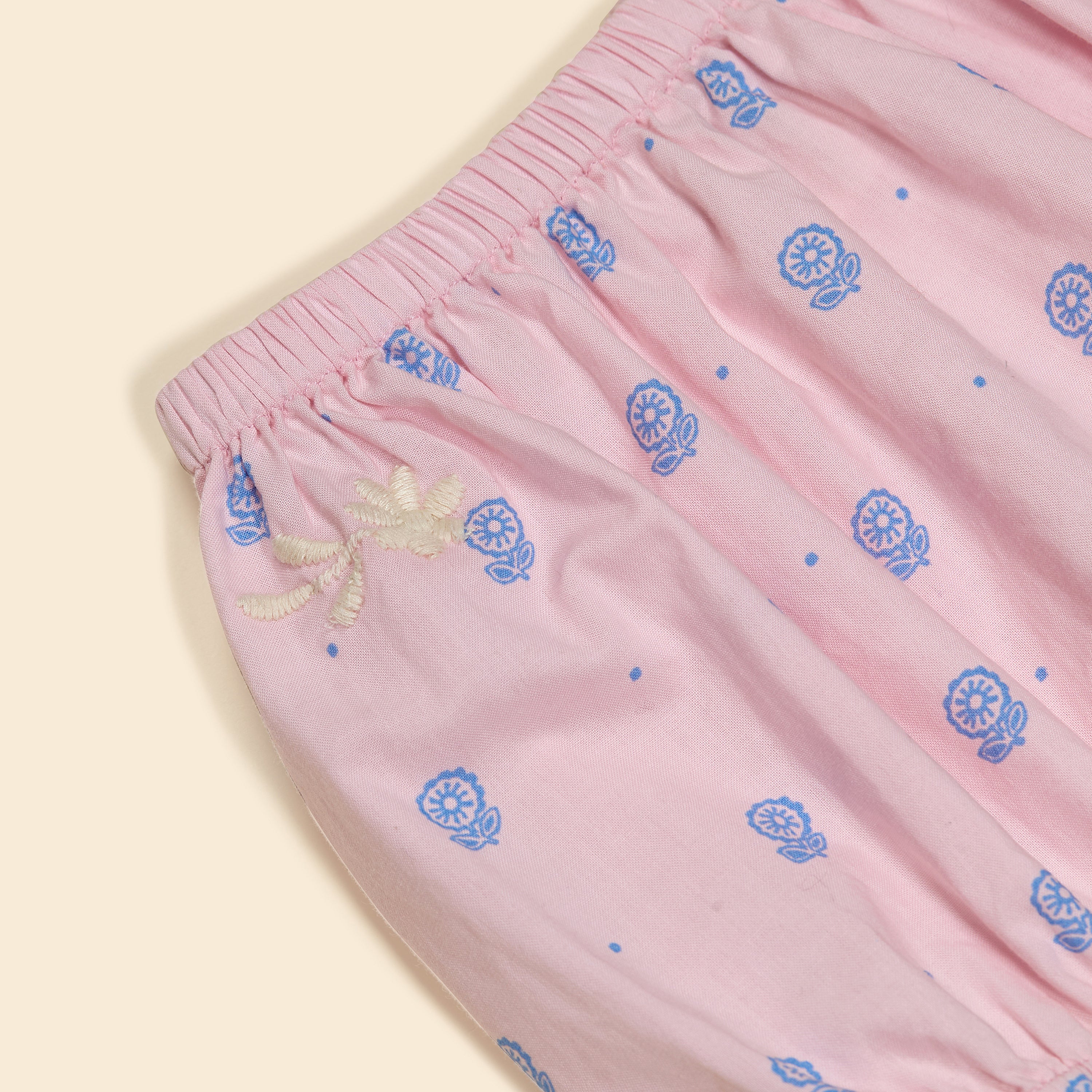 · Crafted from the season’s ‘Studio Calico’ print with cream embroidery motifs under the waist
