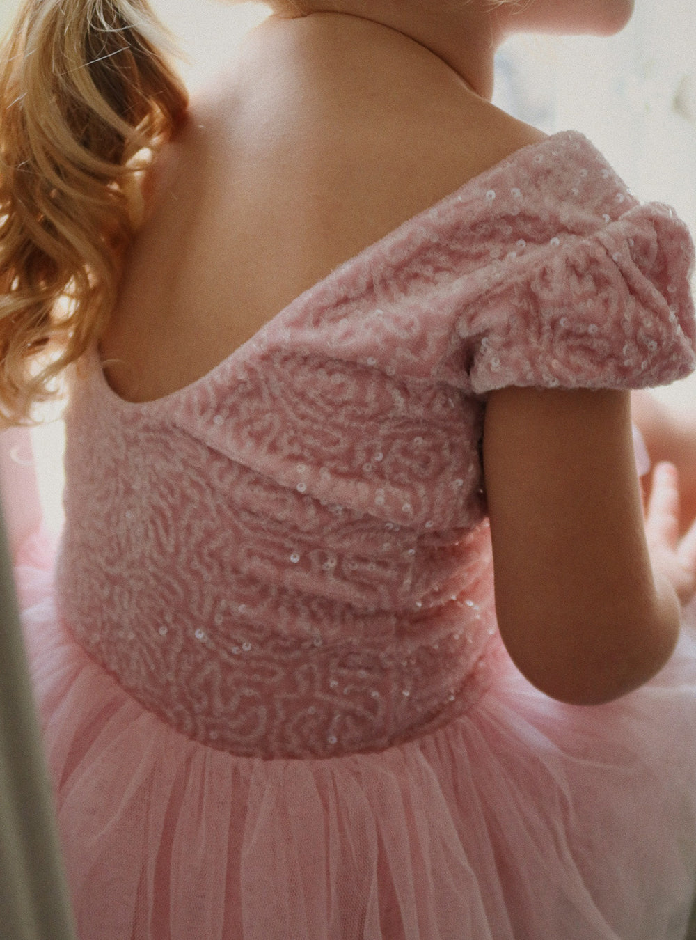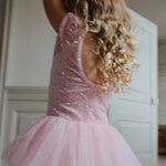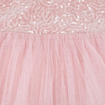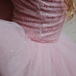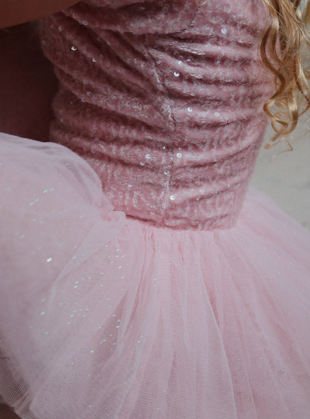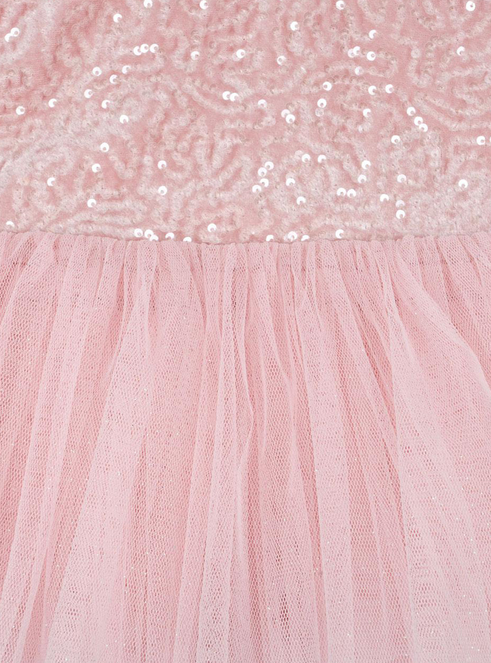 · Sparkly sequin bodice with soft pink shine