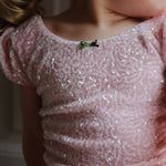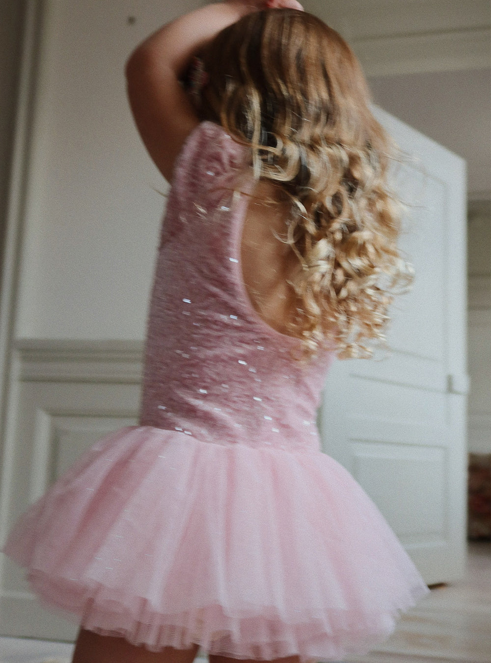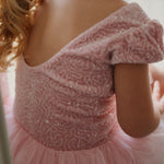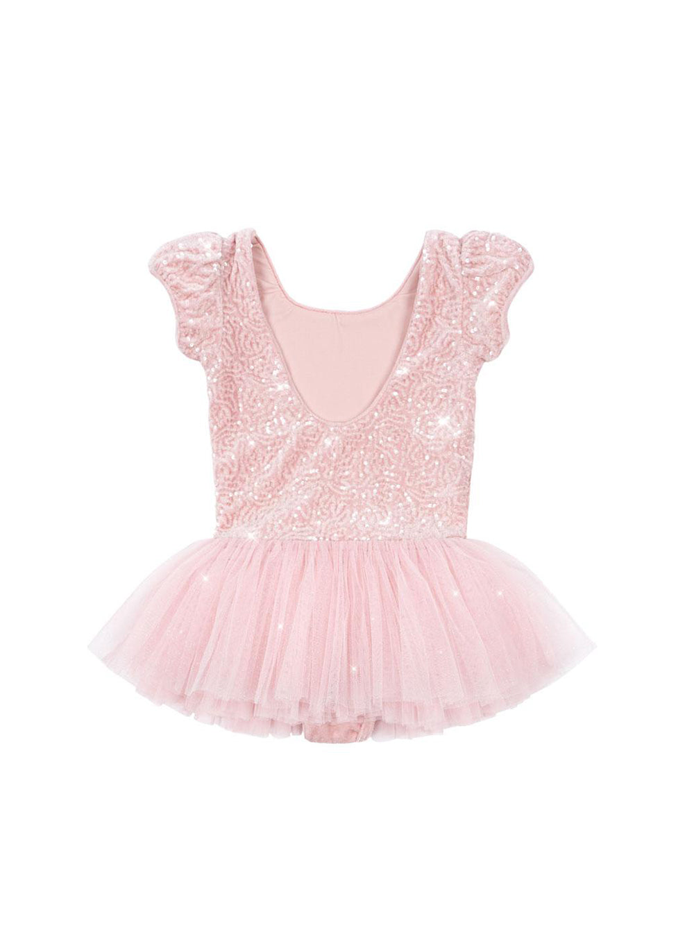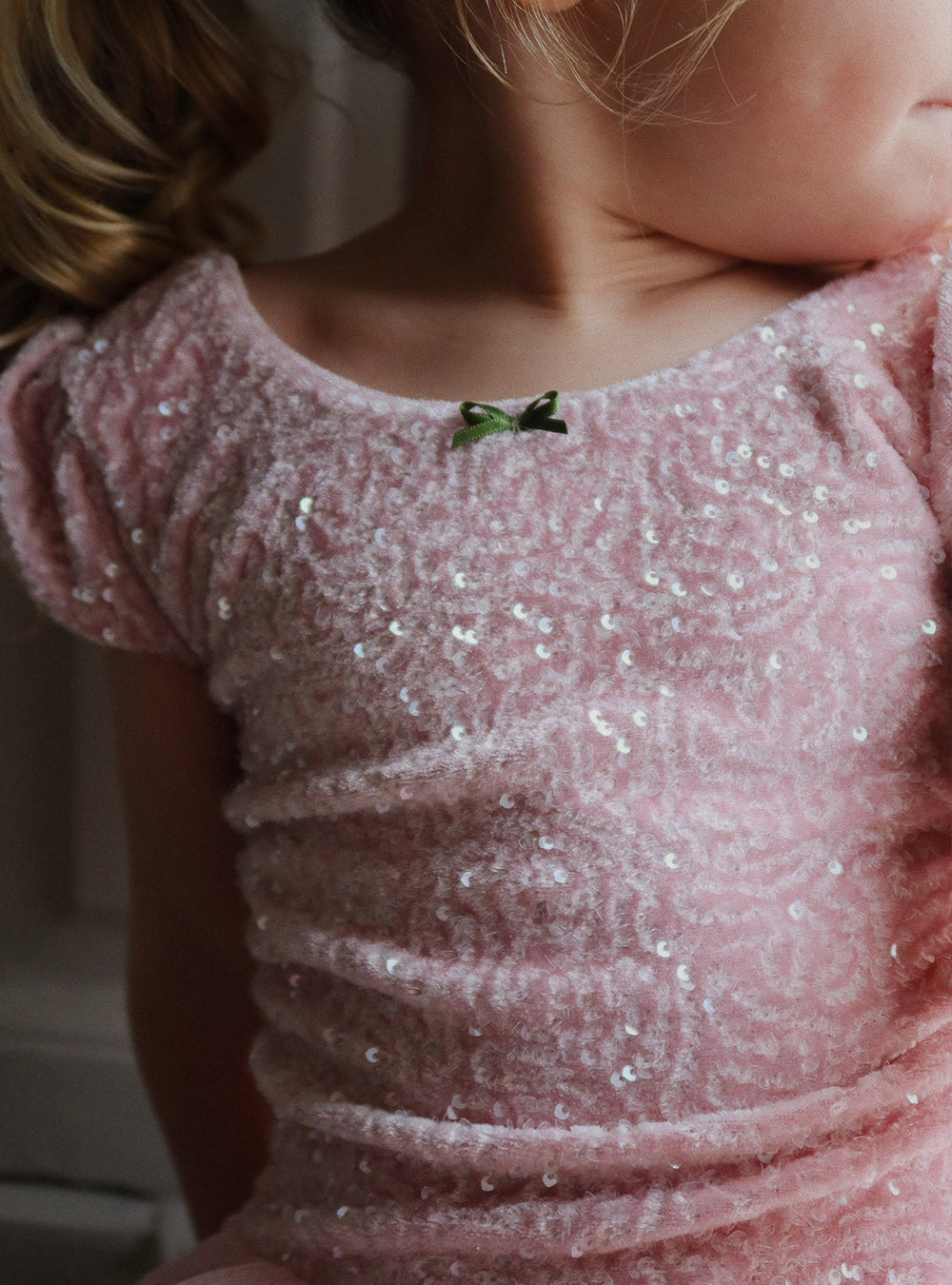 · Sparkly sequin bodice with soft pink shine
