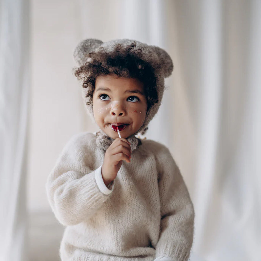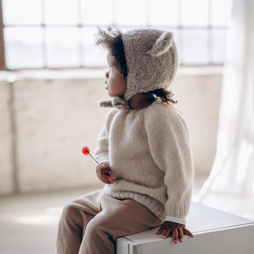 - This hand knitted baby hat is made of delicate composite of boucle yarn