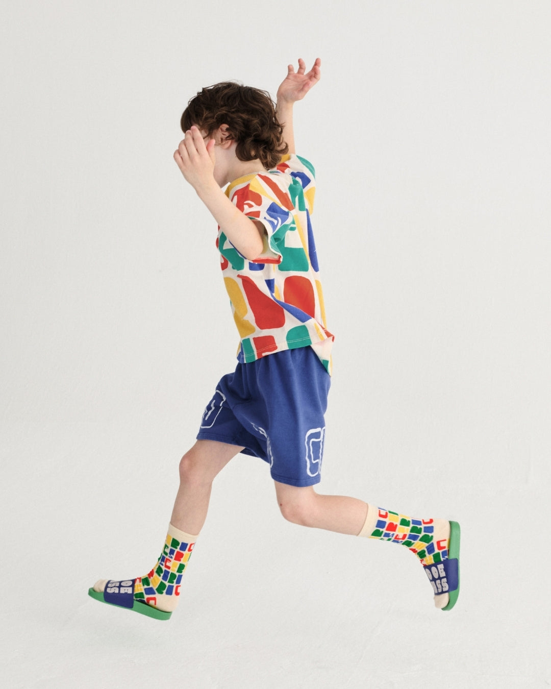 · Allover bold color-block graphic inspired by Bobo Choses’ playful aesthetic