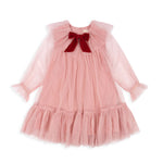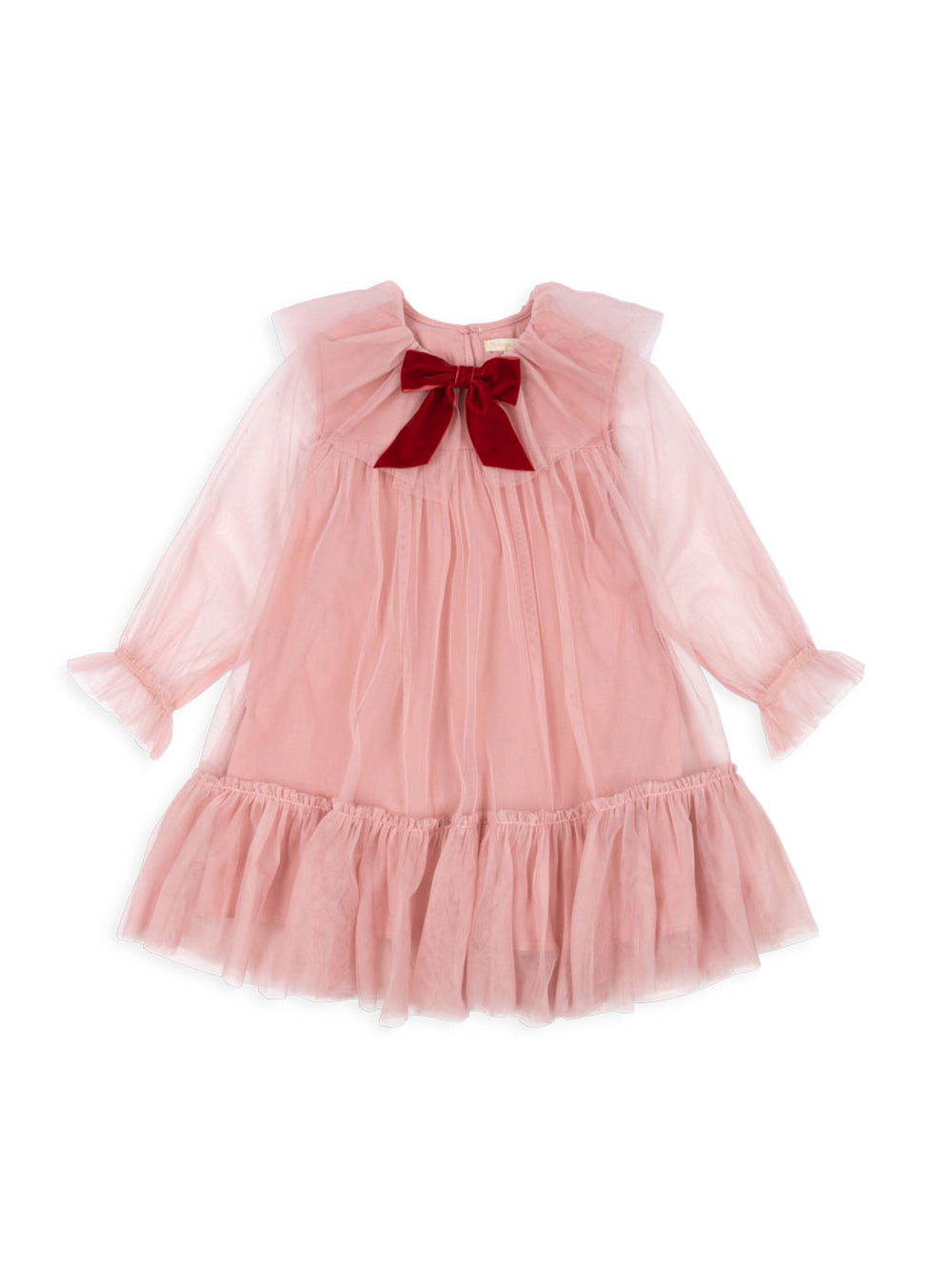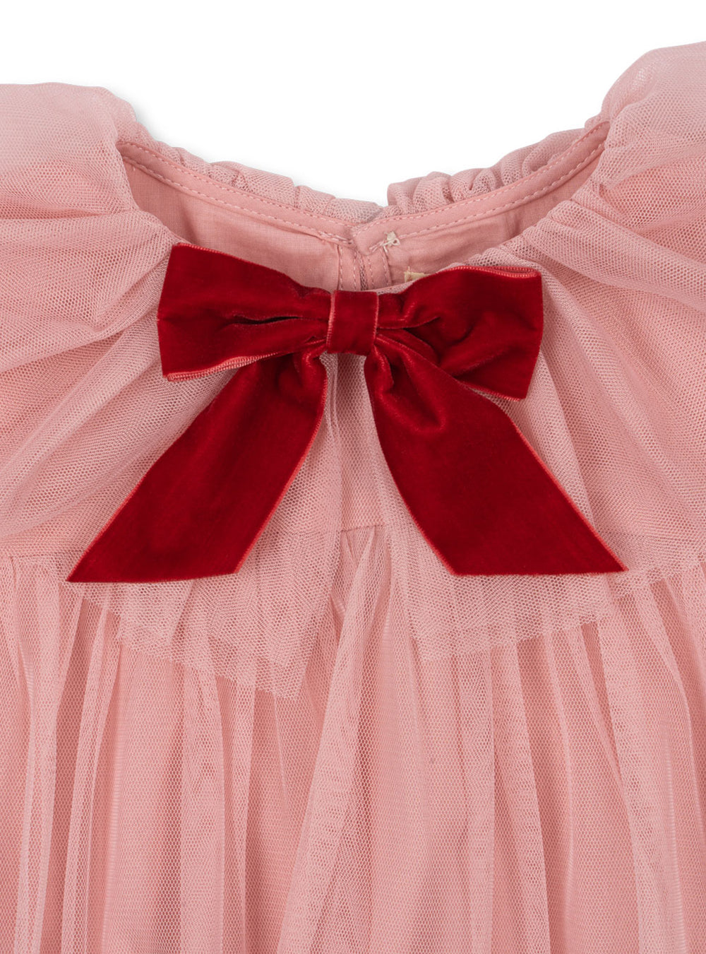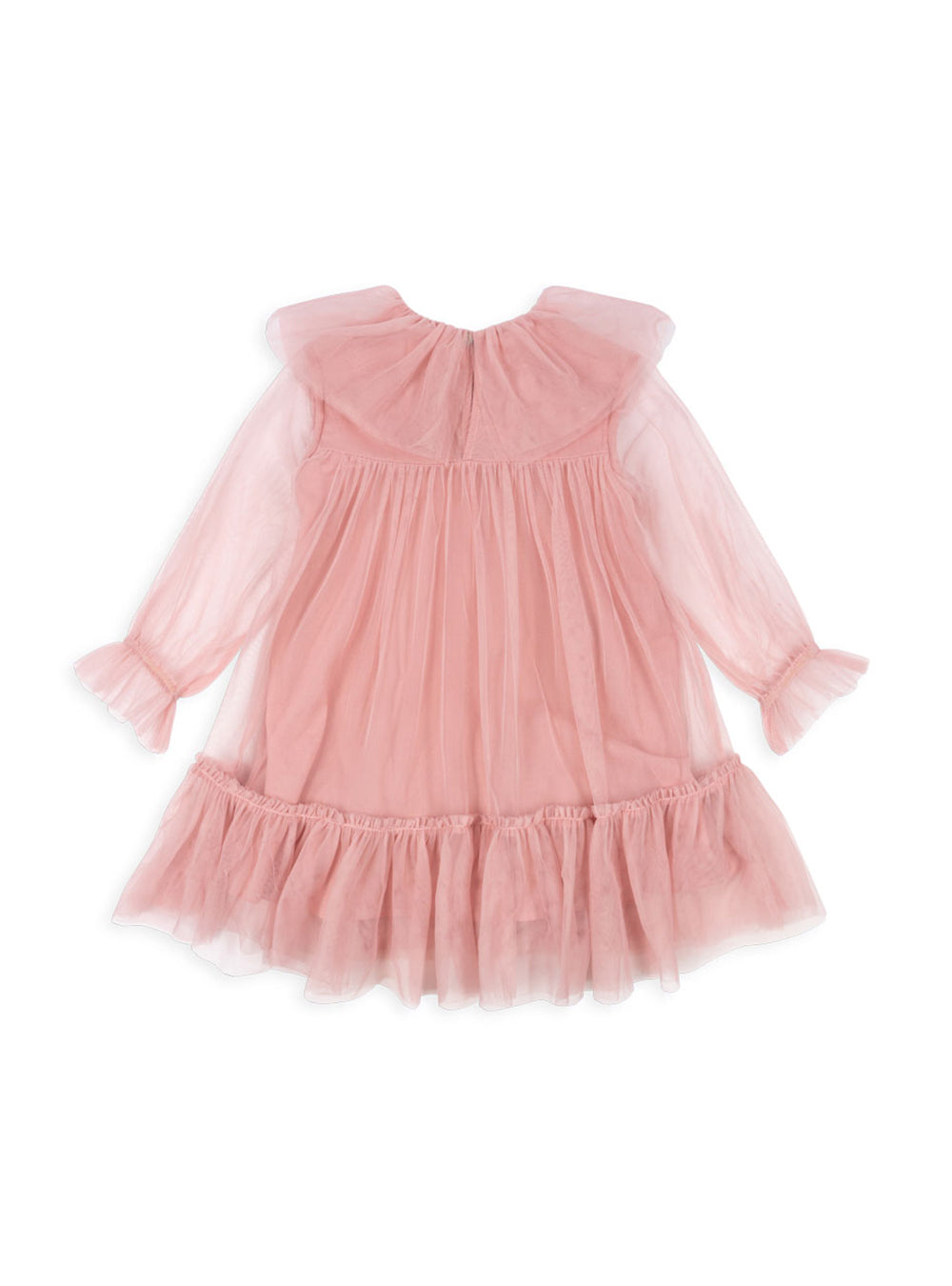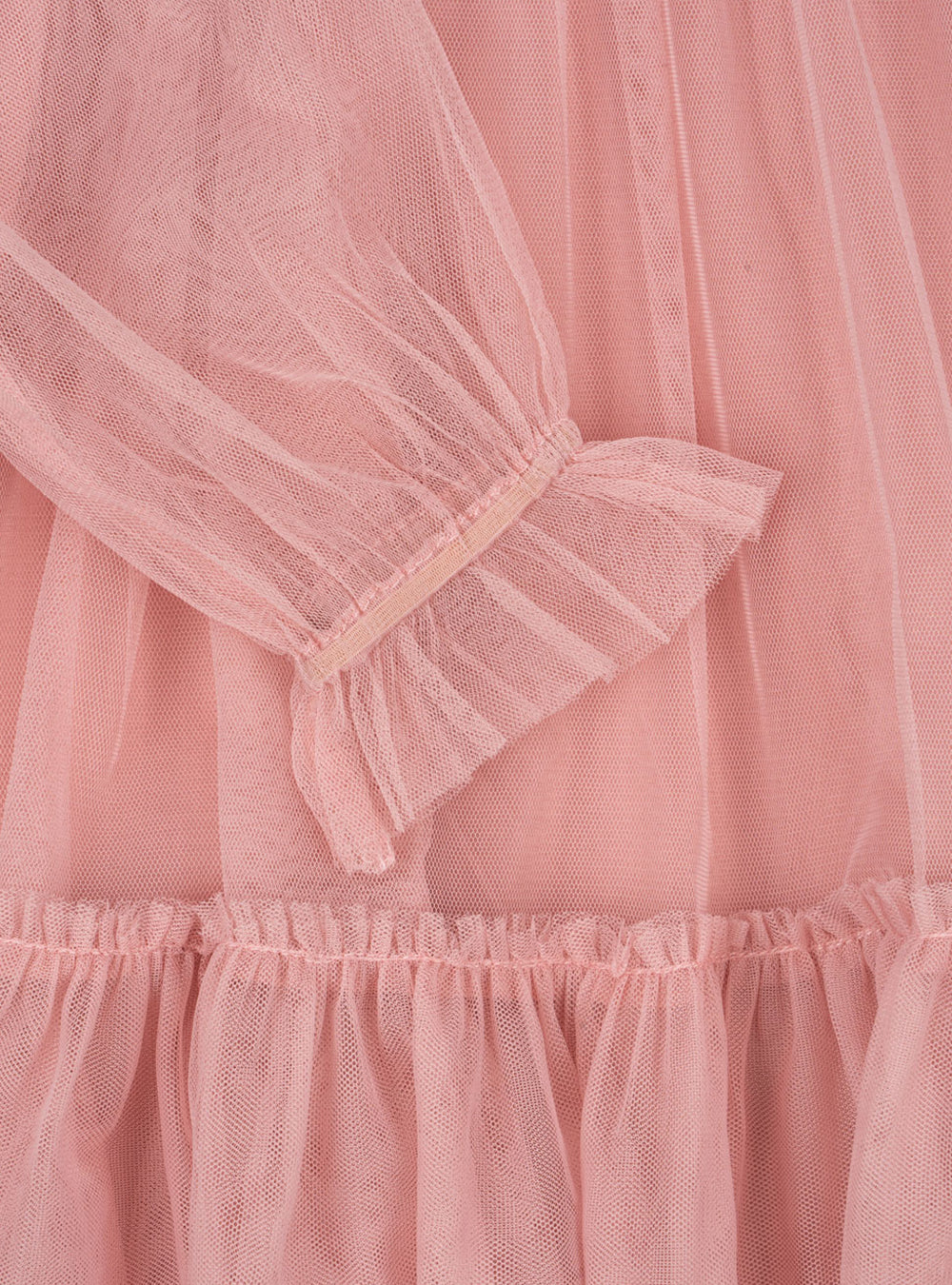 · A dreamy tulle dress in mellow rose with soft puff sleeves