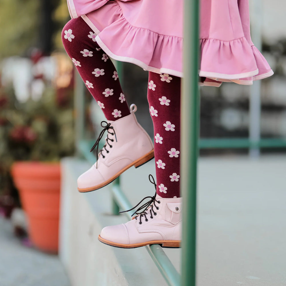 Little Stocking Co :: Burgundy Flower Knit Tights