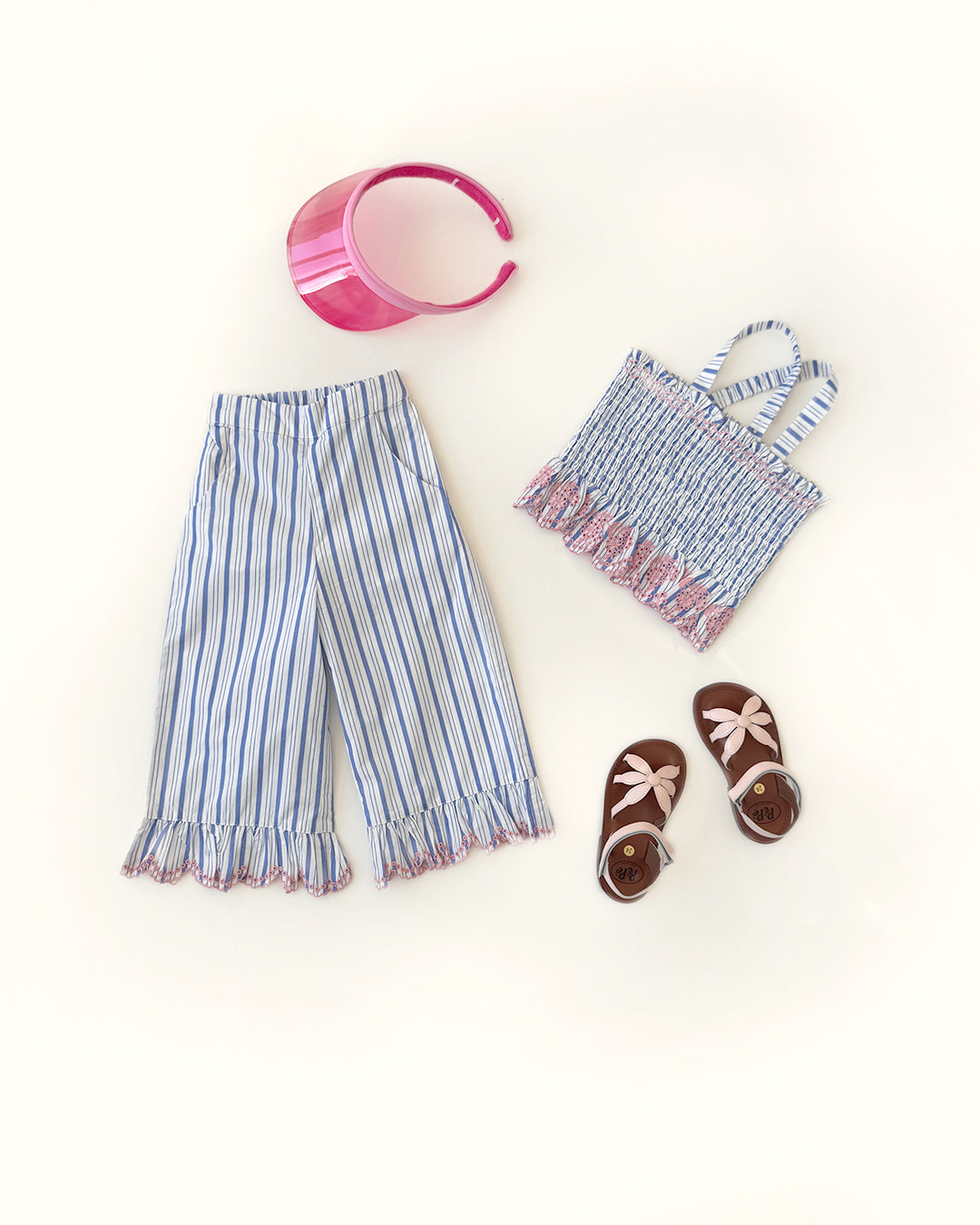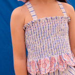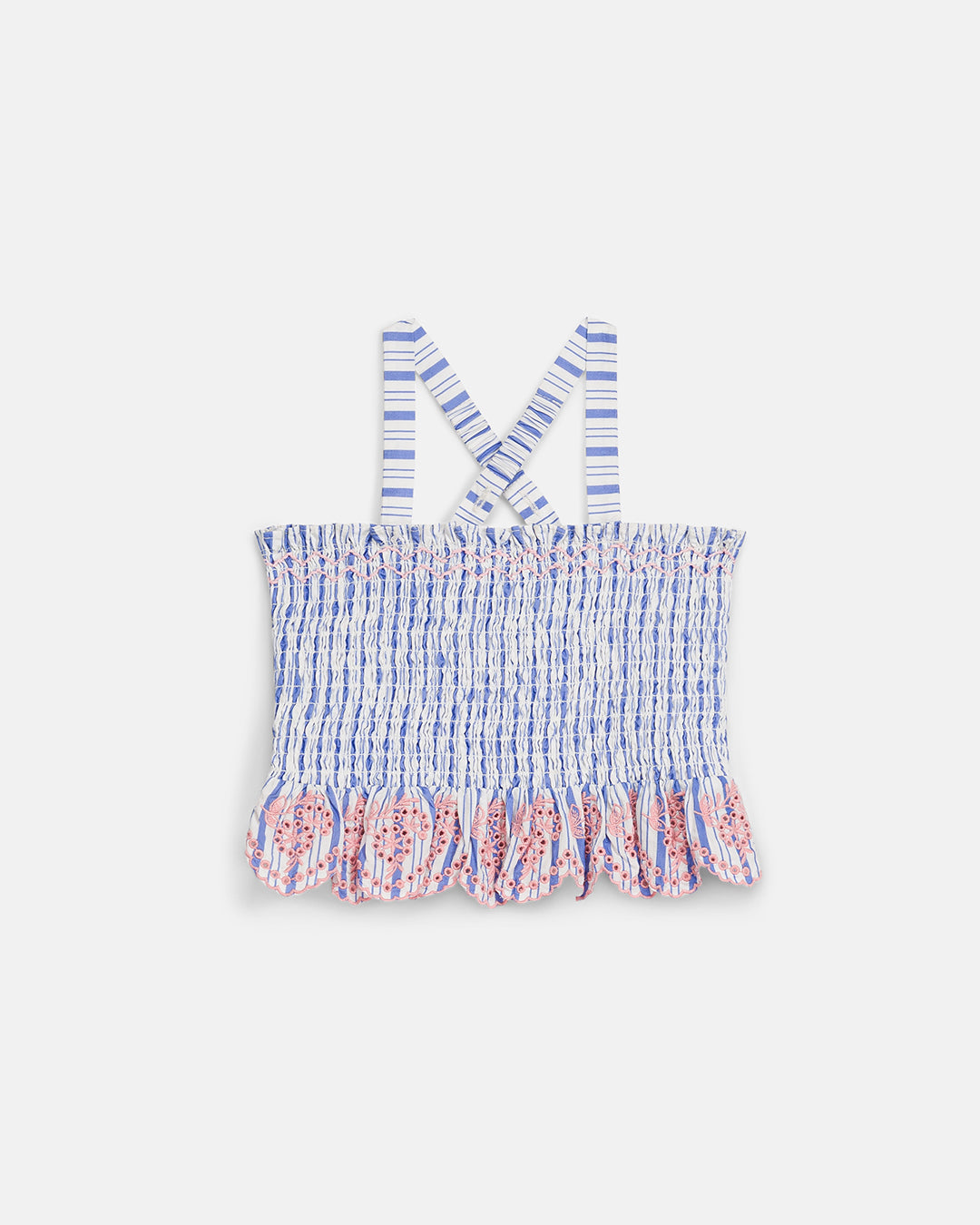· Smocked cotton poplin camisole with a soft blue and white striped pattern