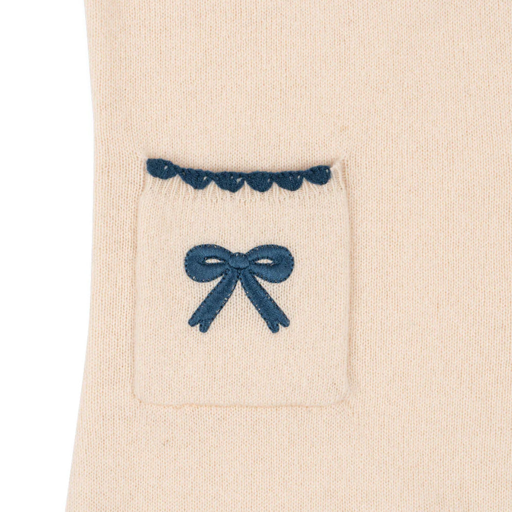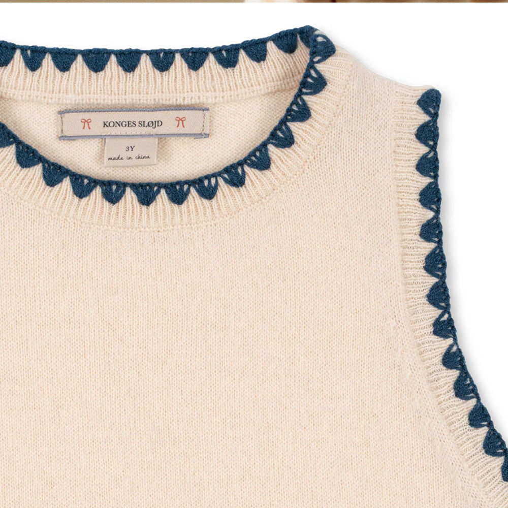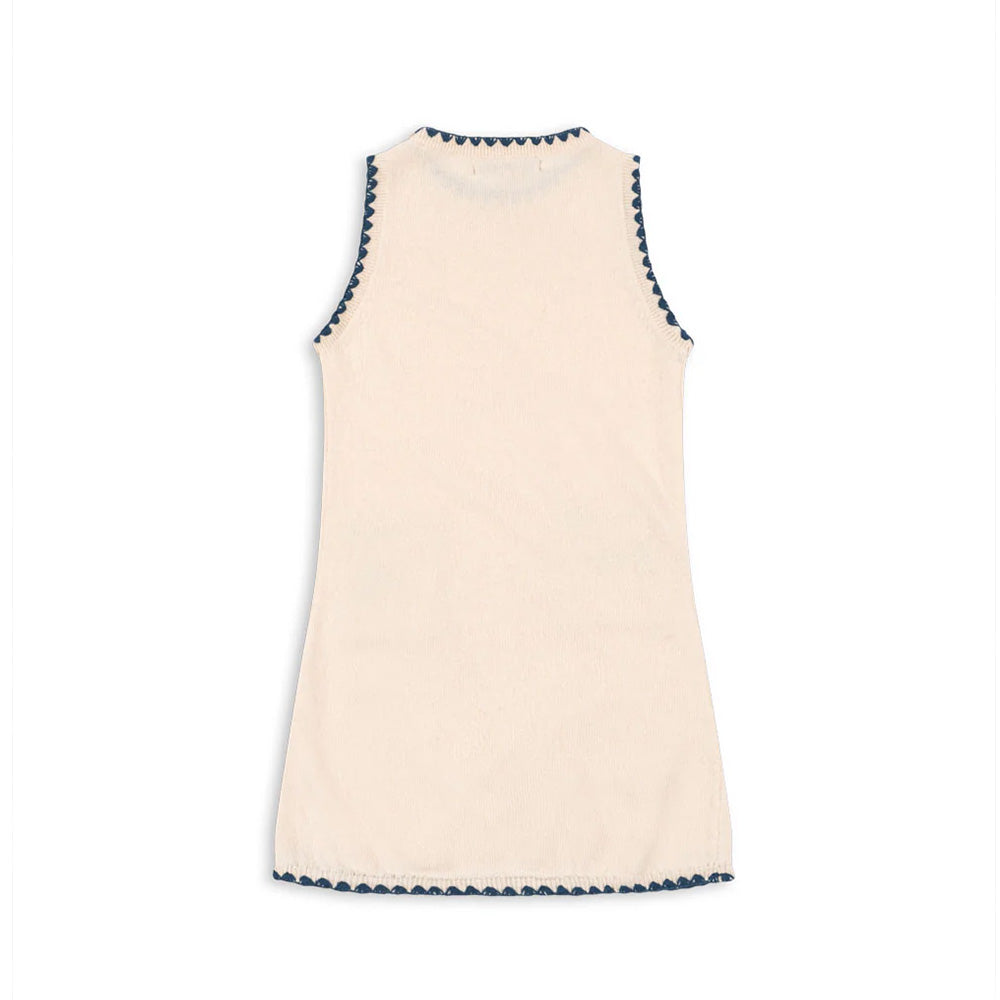 · Soft and warm wool dress with contrast stitching along hems and embroidered bows.