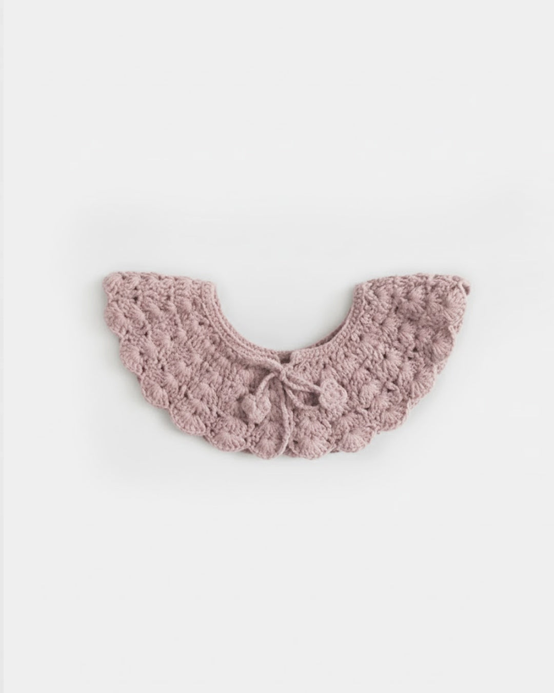· Hand-crocheted collar featuring a delicate scalloped edge