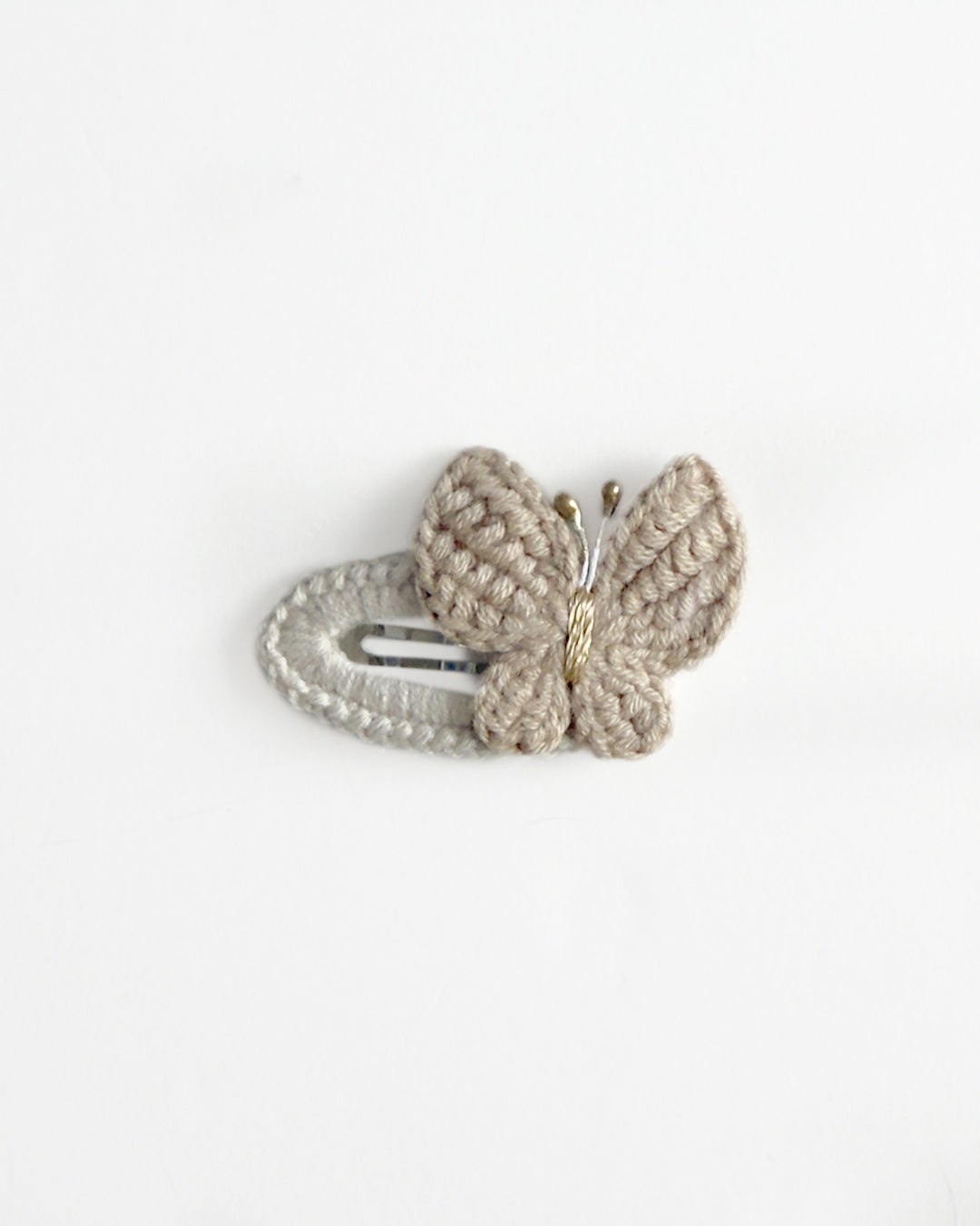 · Handmade crochet hair clip featuring a delicate butterfly design