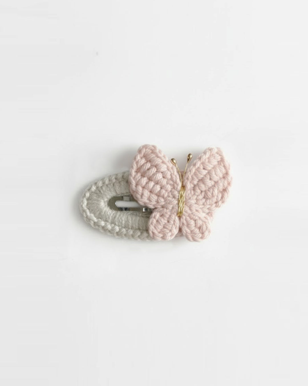 · Handmade crochet hair clip featuring a delicate butterfly design