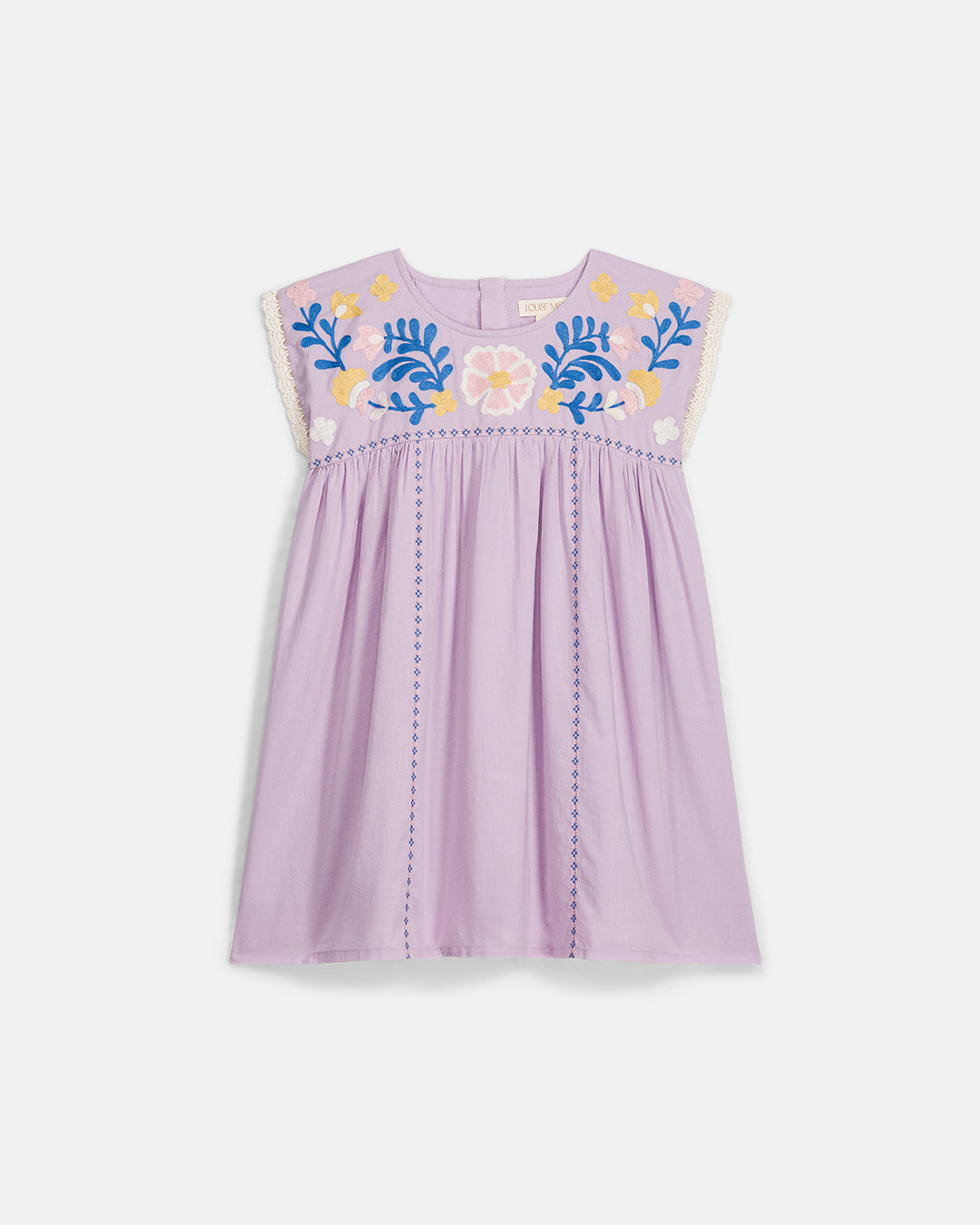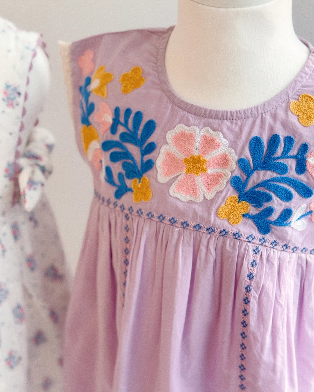 · Beautifully embroidered yoke featuring colorful floral and vine motifs