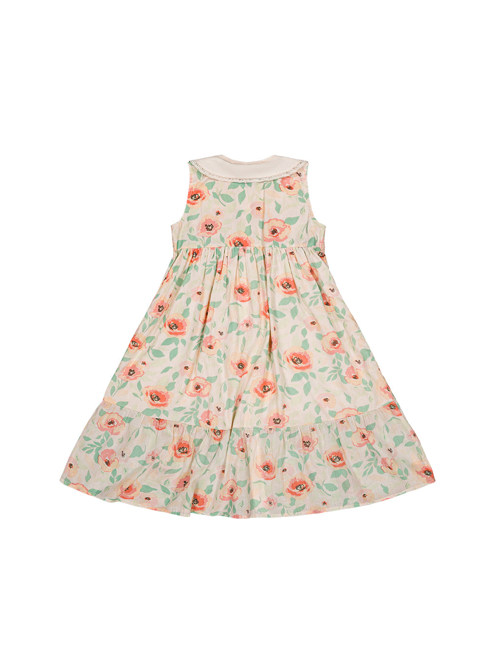 · Lace-trimmed Peter Pan collar with subtle embroidery accents