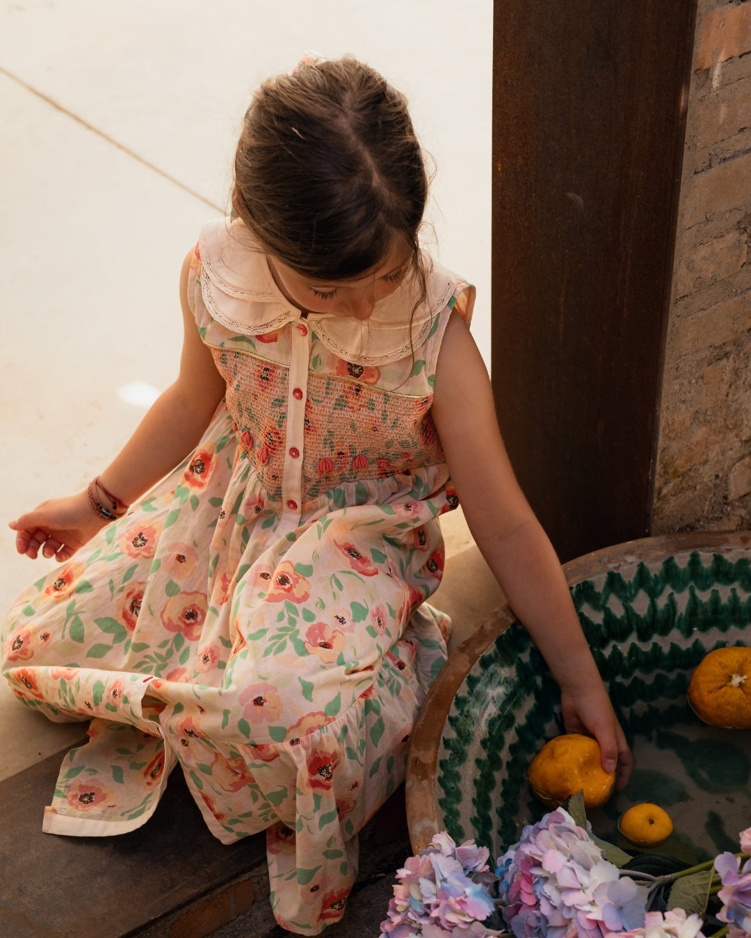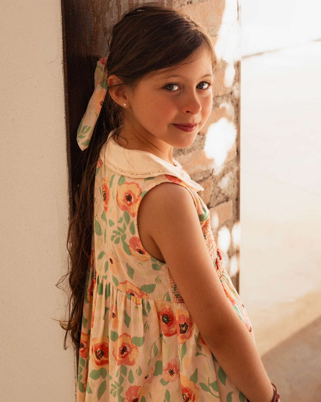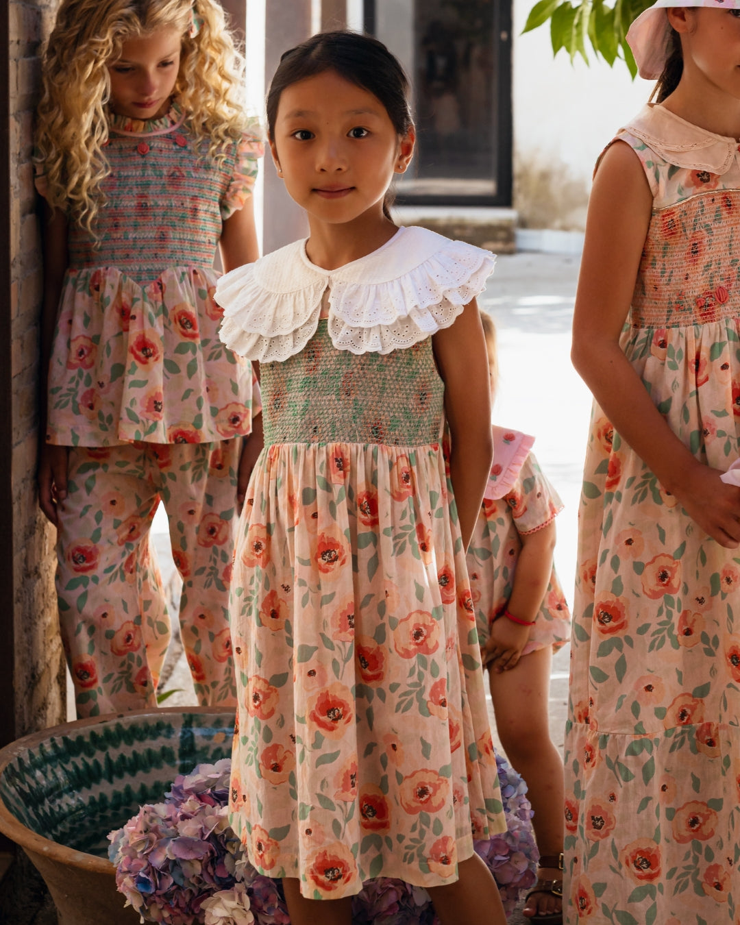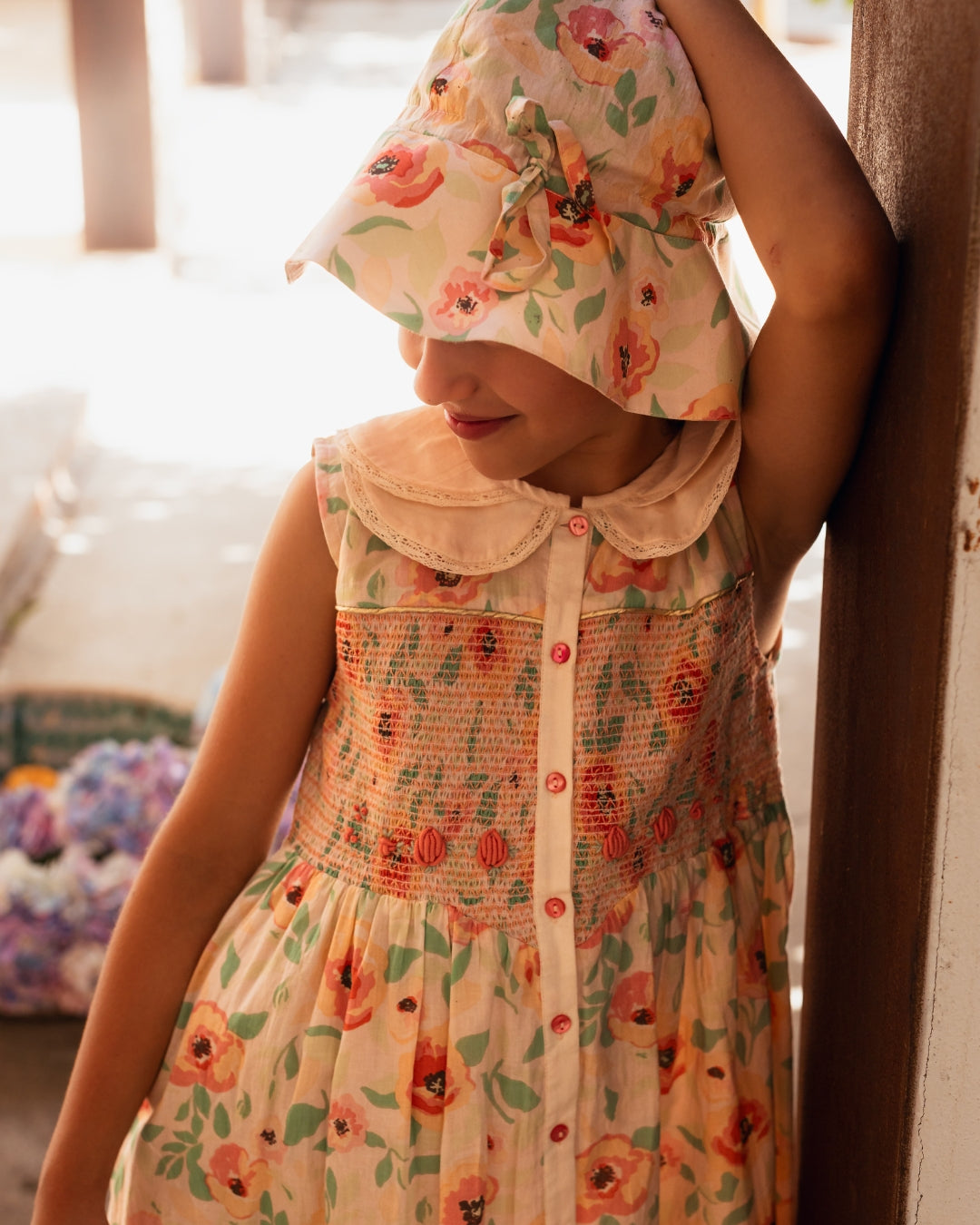 · Hand-smocked bodice with delicate multicolor stitching detail