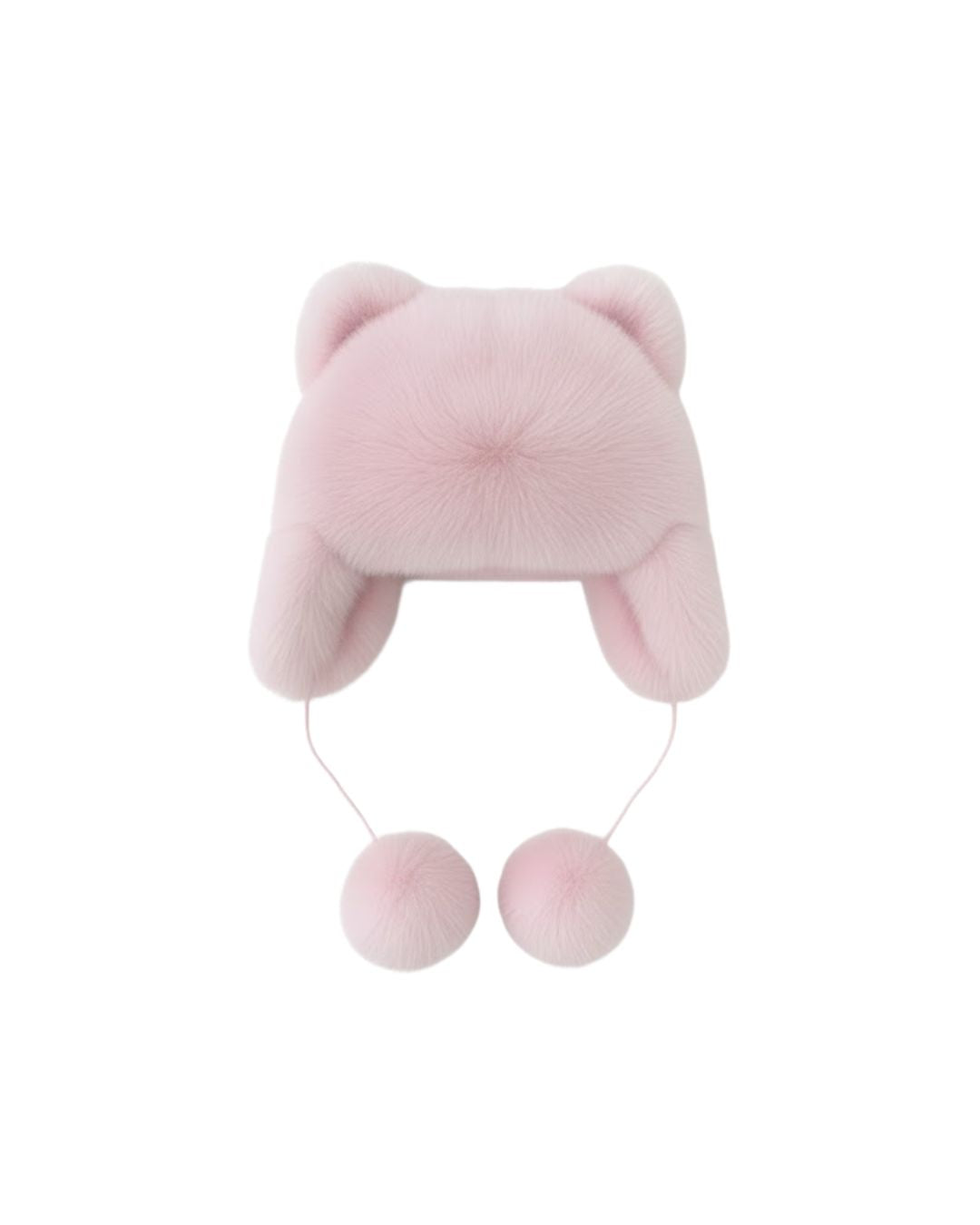 · Features cute rounded bear ears and fluffy pom-pom ties