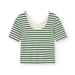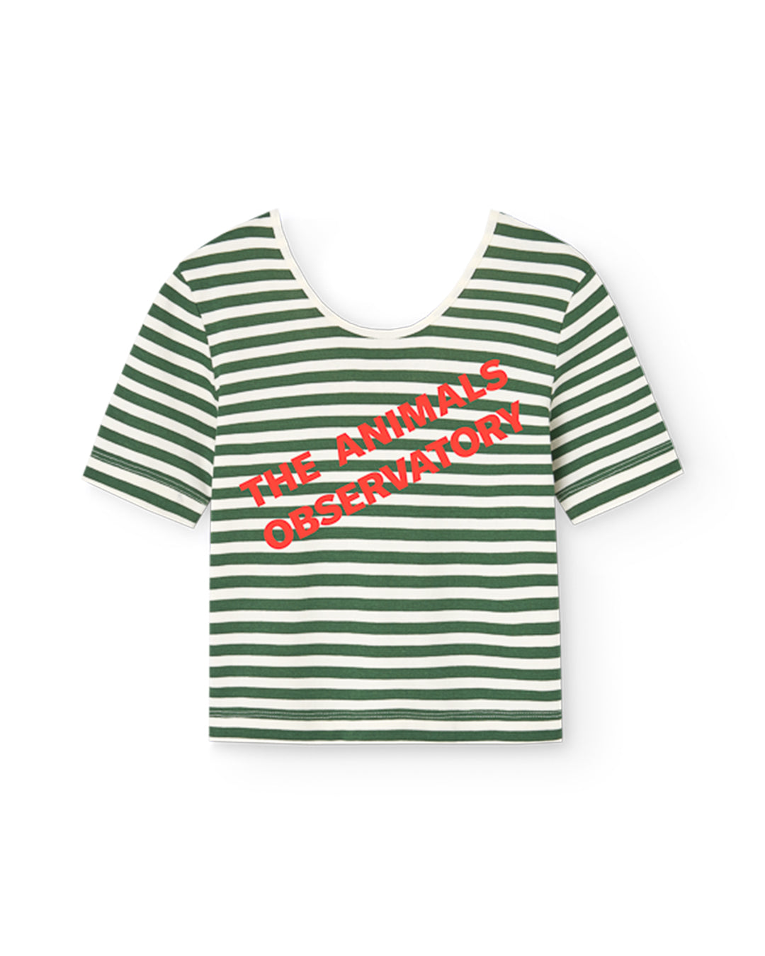 · Striped cotton jersey top in green and white with bold The Animals Observatory logo print