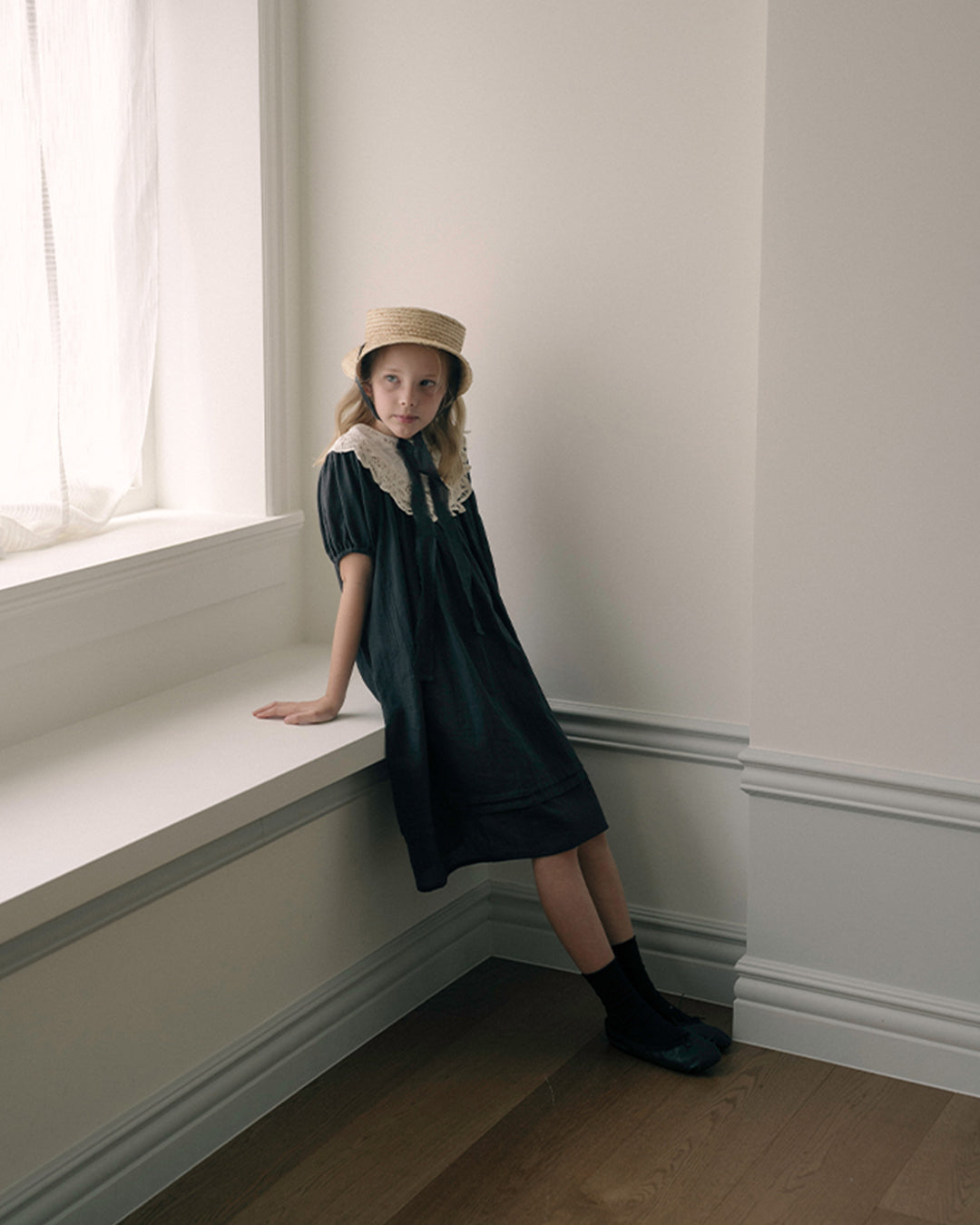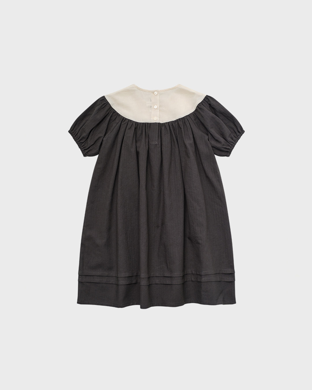 · Soft gathers and puff sleeves for a classic silhouette