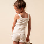 · Soft knit shorts in a natural oatmeal tone