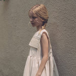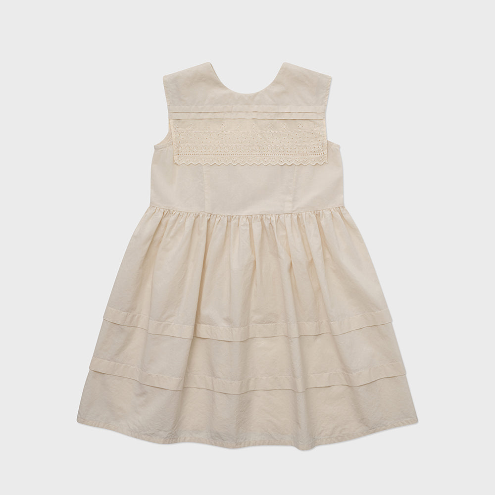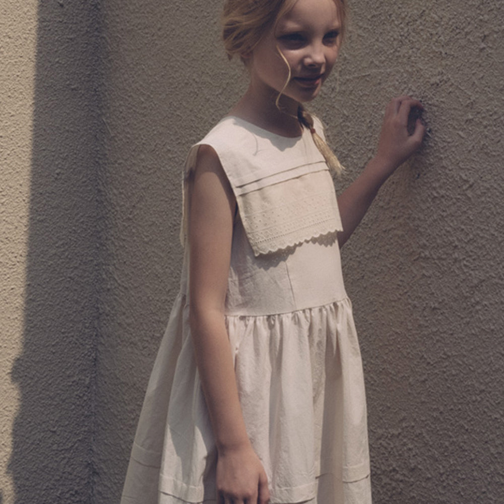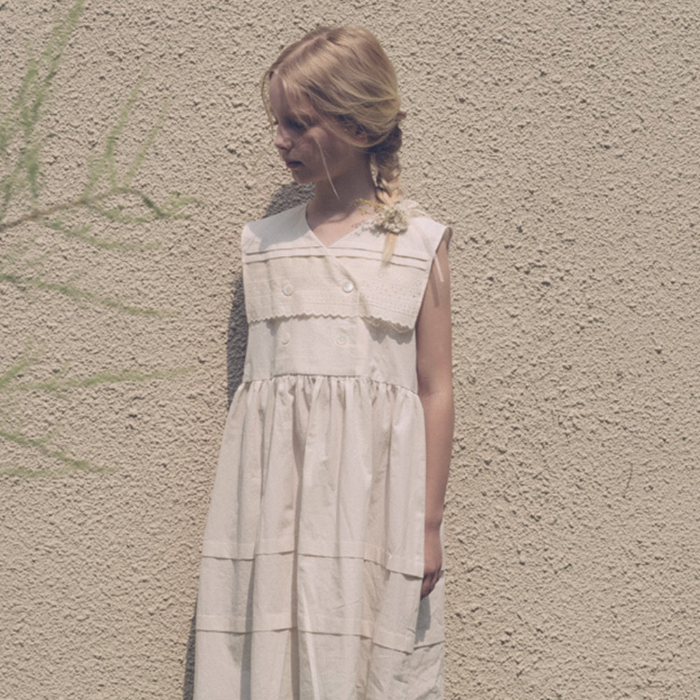 · Versatile girl's dress can be worn two ways: with a V-neck and double-button style or with a round neck and collar.
