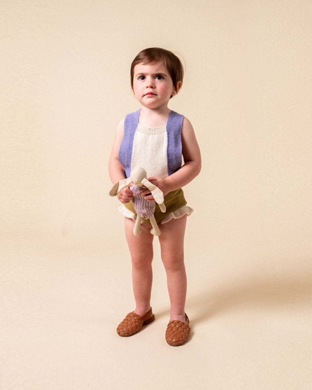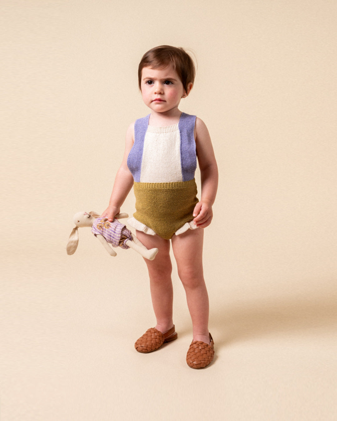 · Soft knitted romper in playful color-block