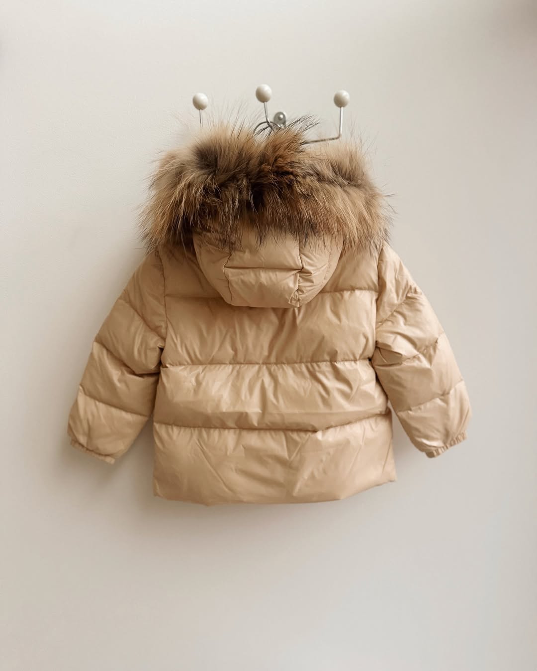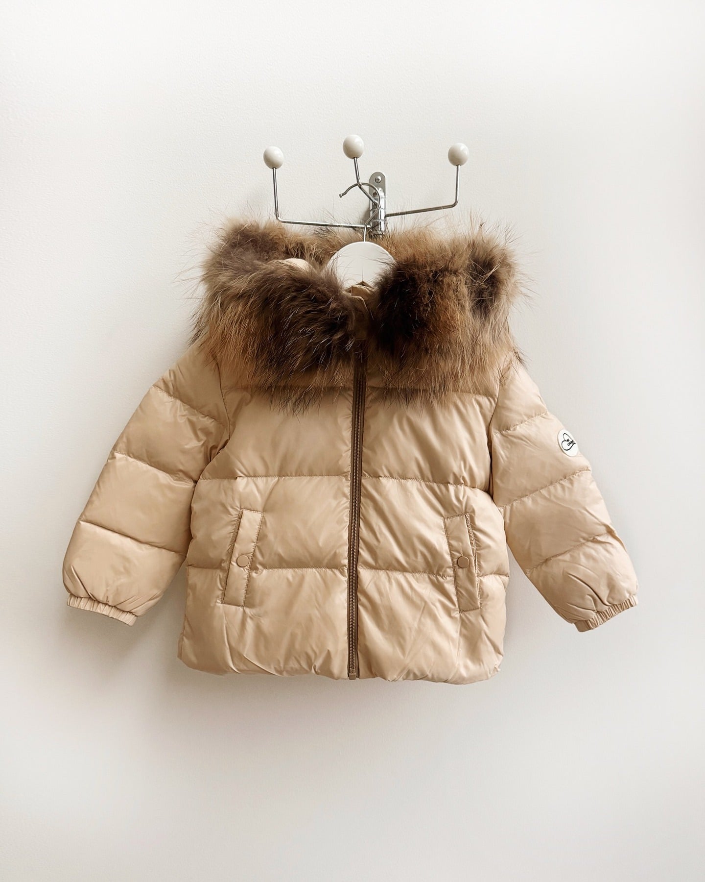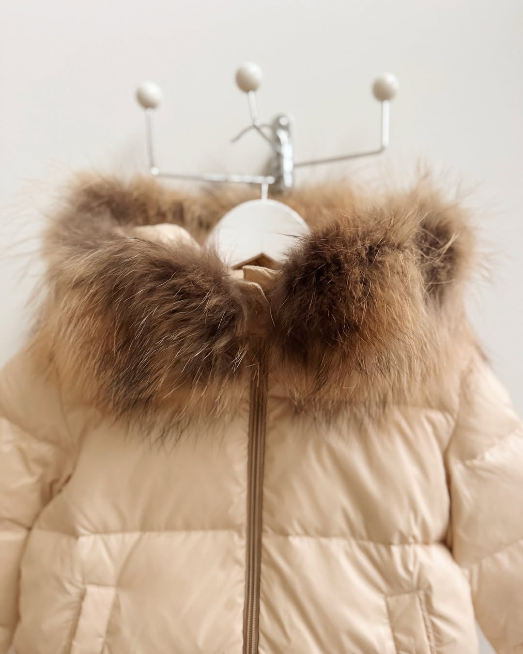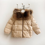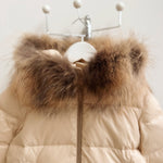 Mi Loves - Racoon Fur Trim Puff Jacket Cream/Beige