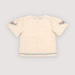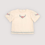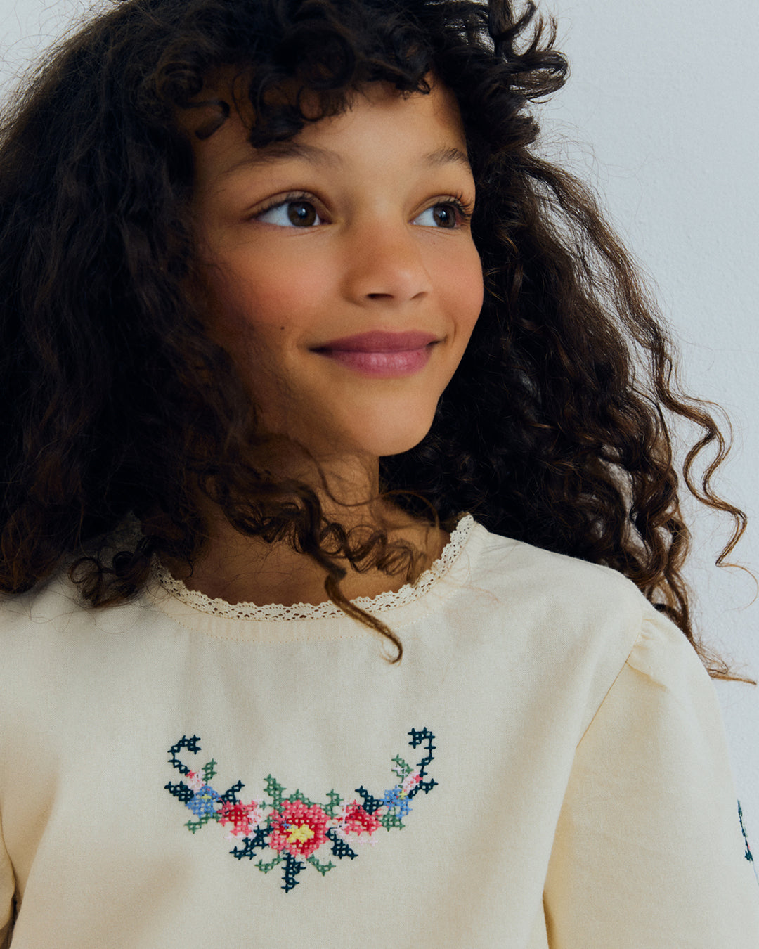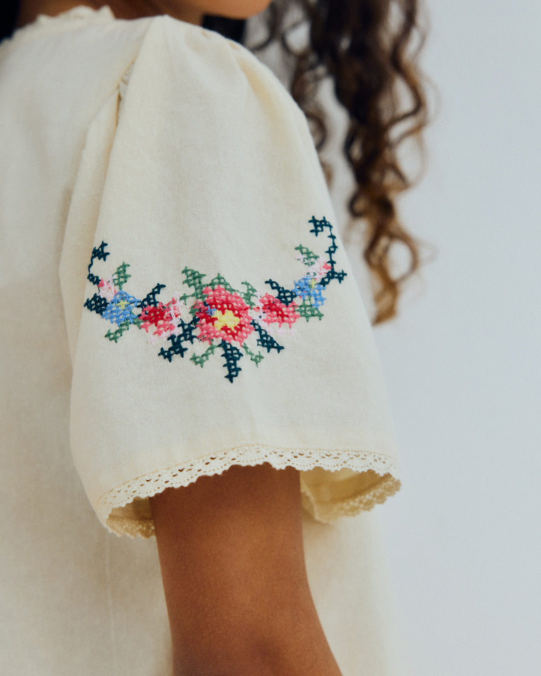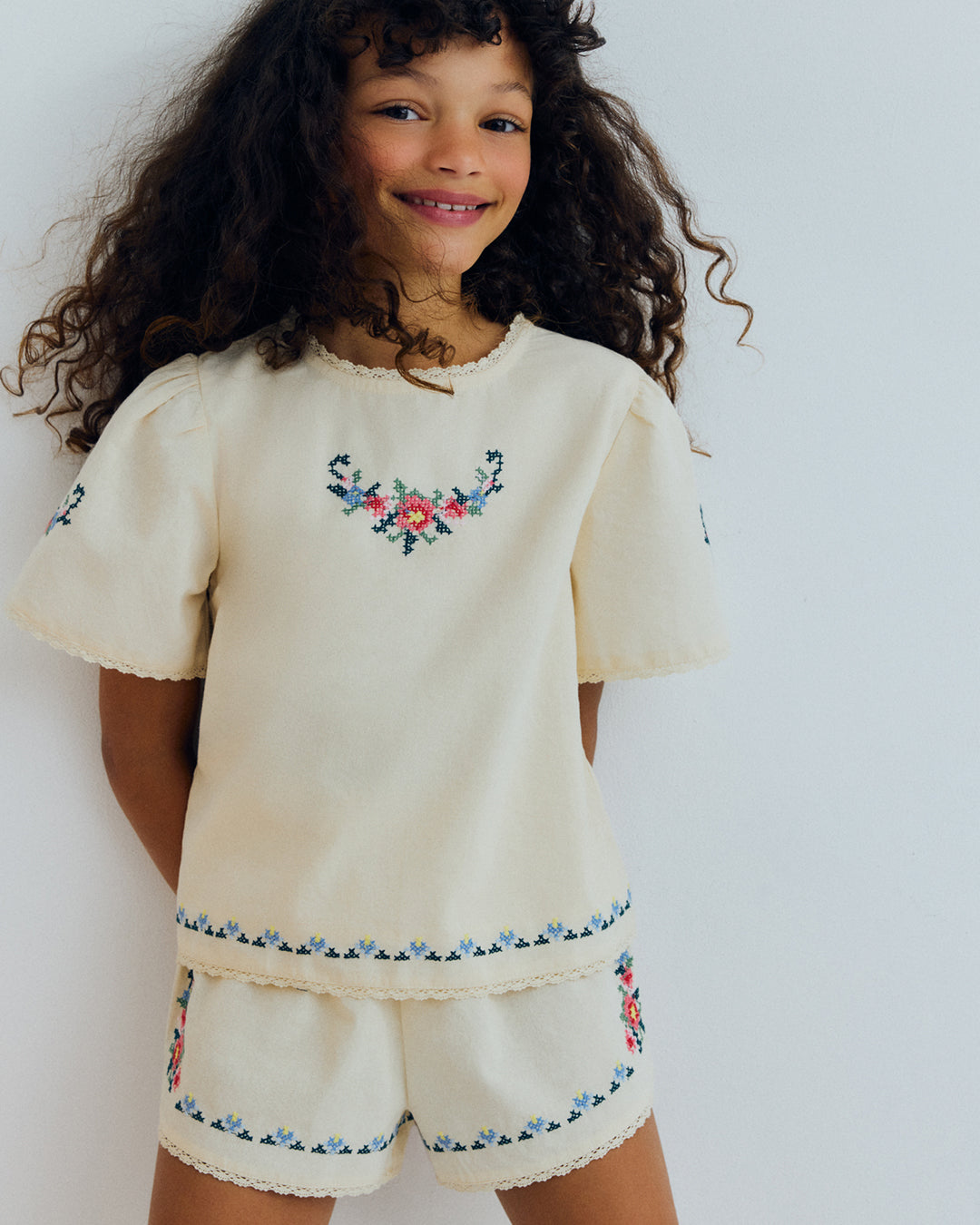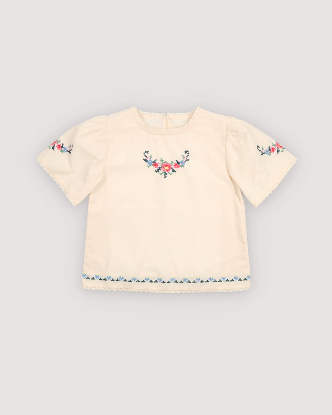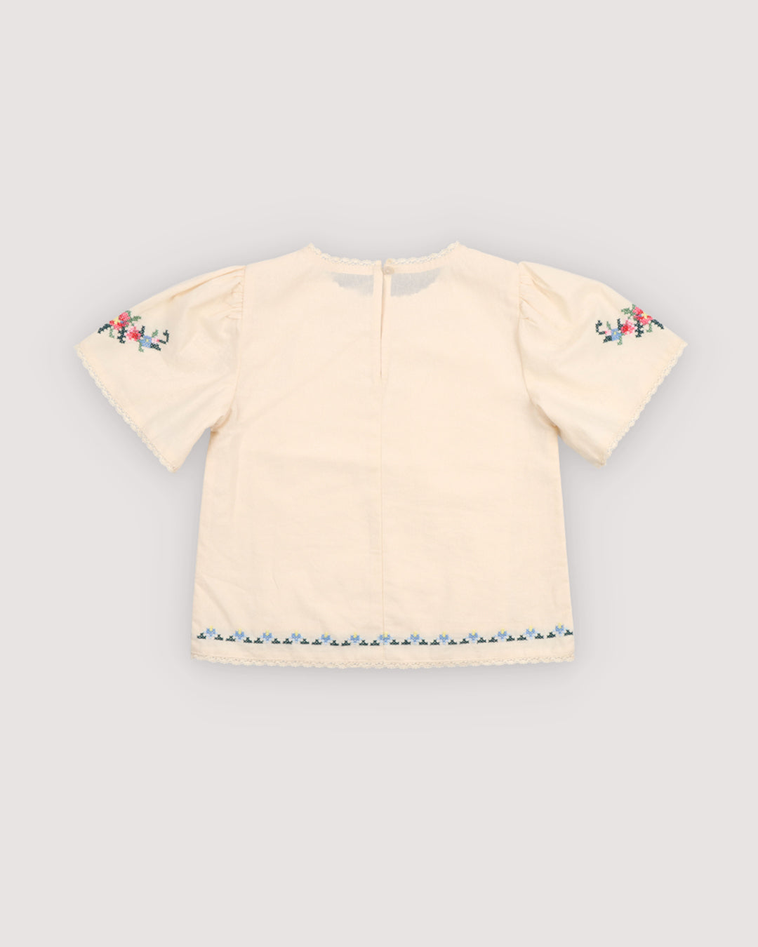 · Delicate ecru blouse with cross-stitch inspired floral embroidery
