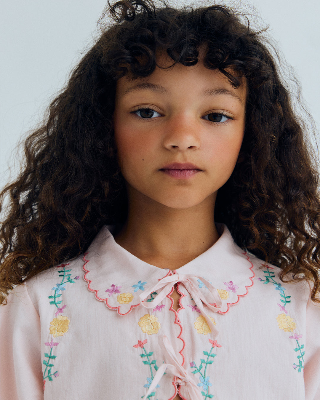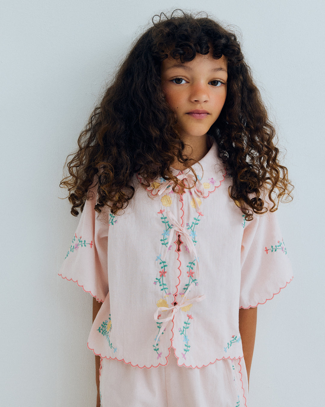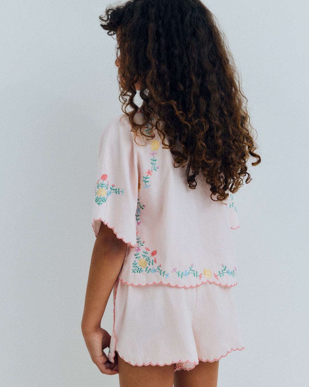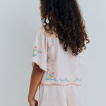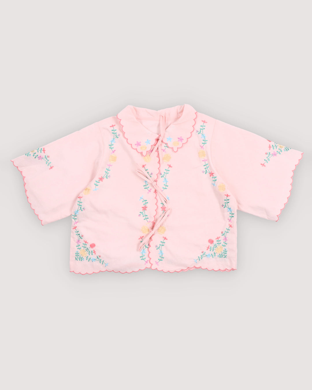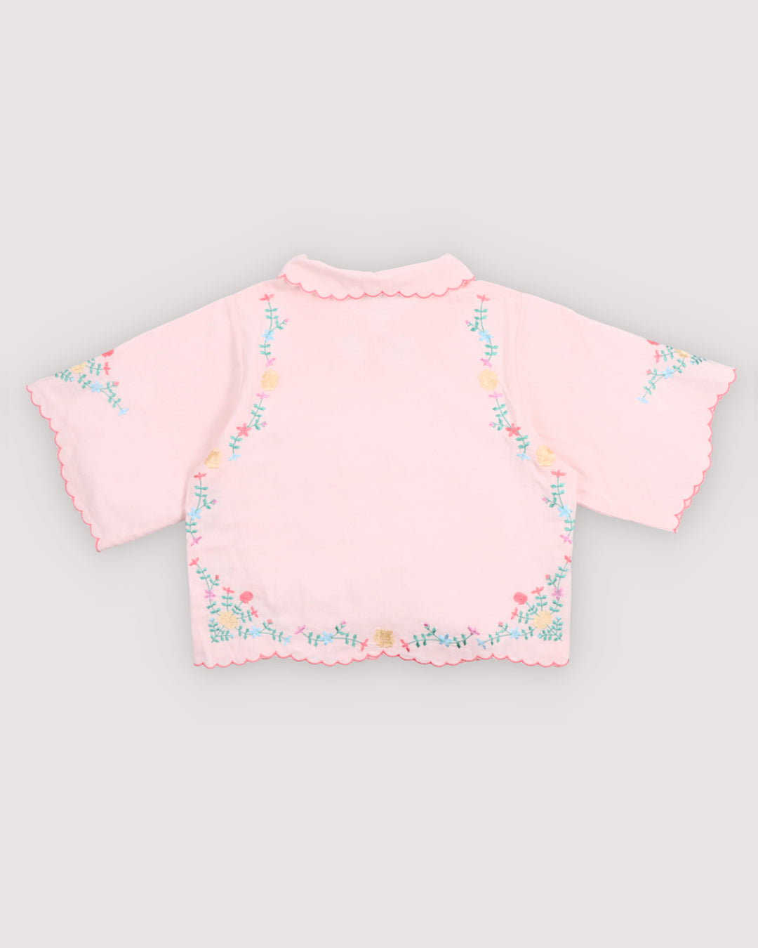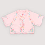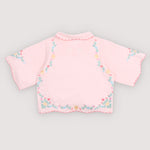 · Dreamy petal-pink blouse with scalloped petal collar and sleeves