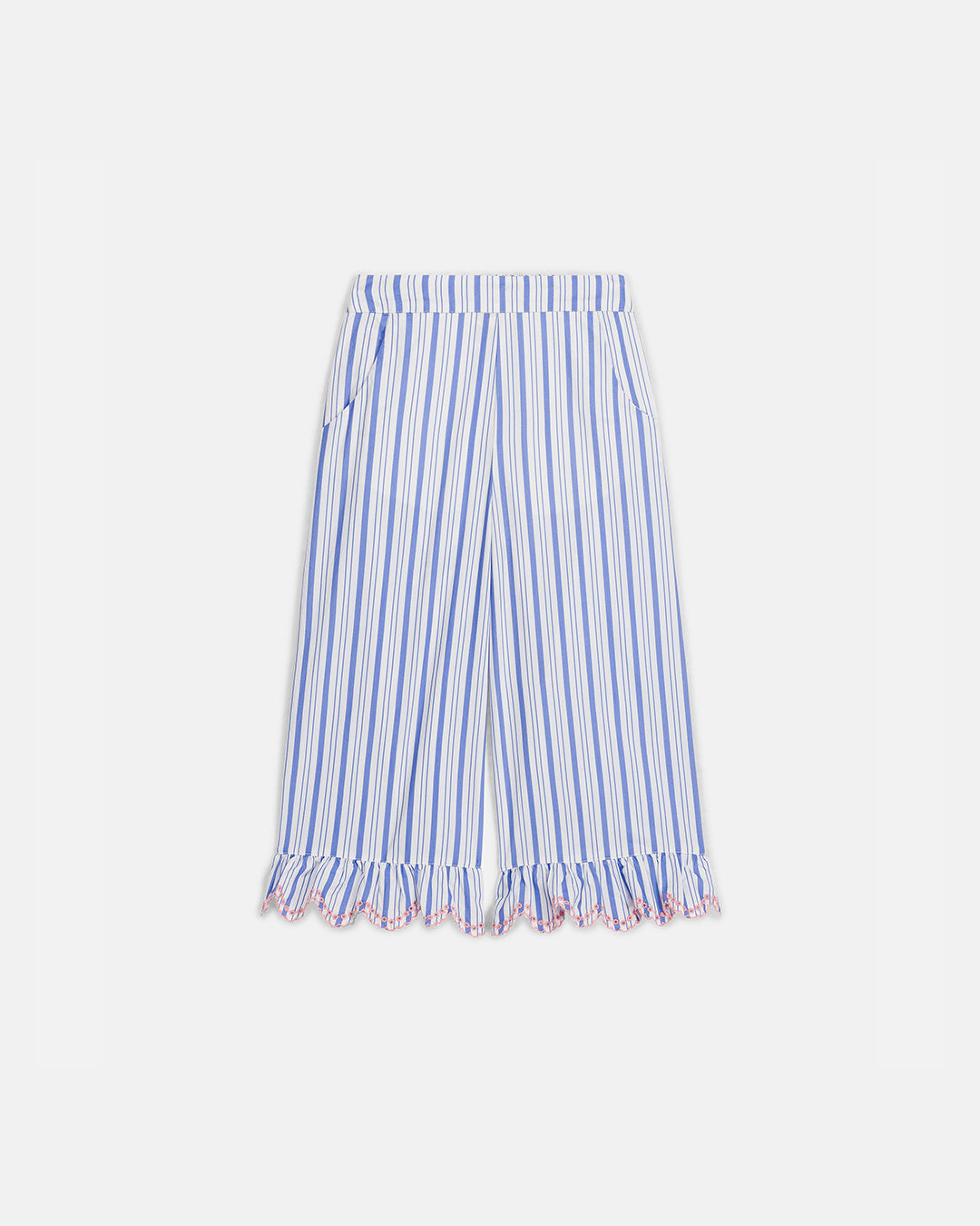 · Lightweight cotton poplin pants with a fresh blue and white striped pattern