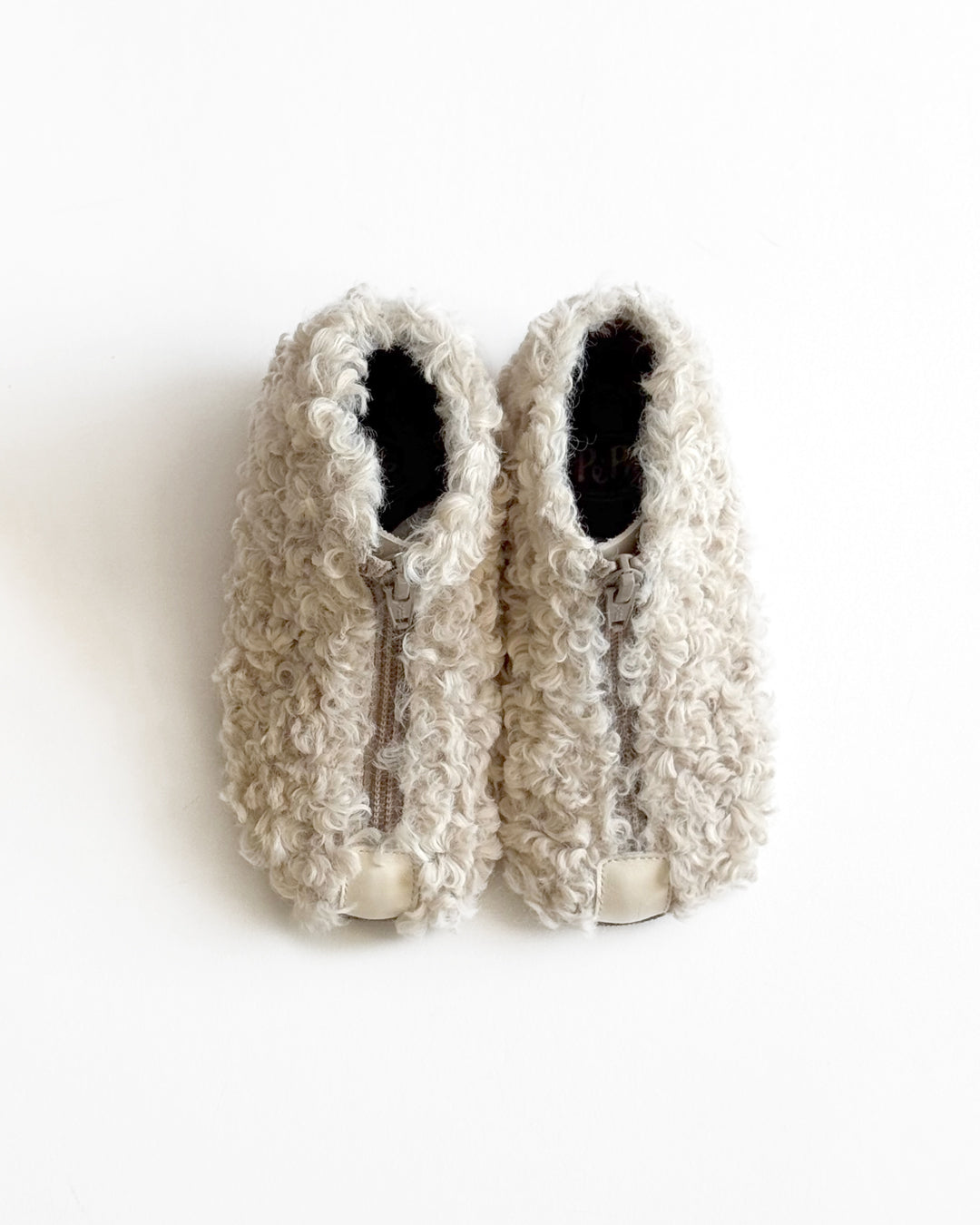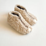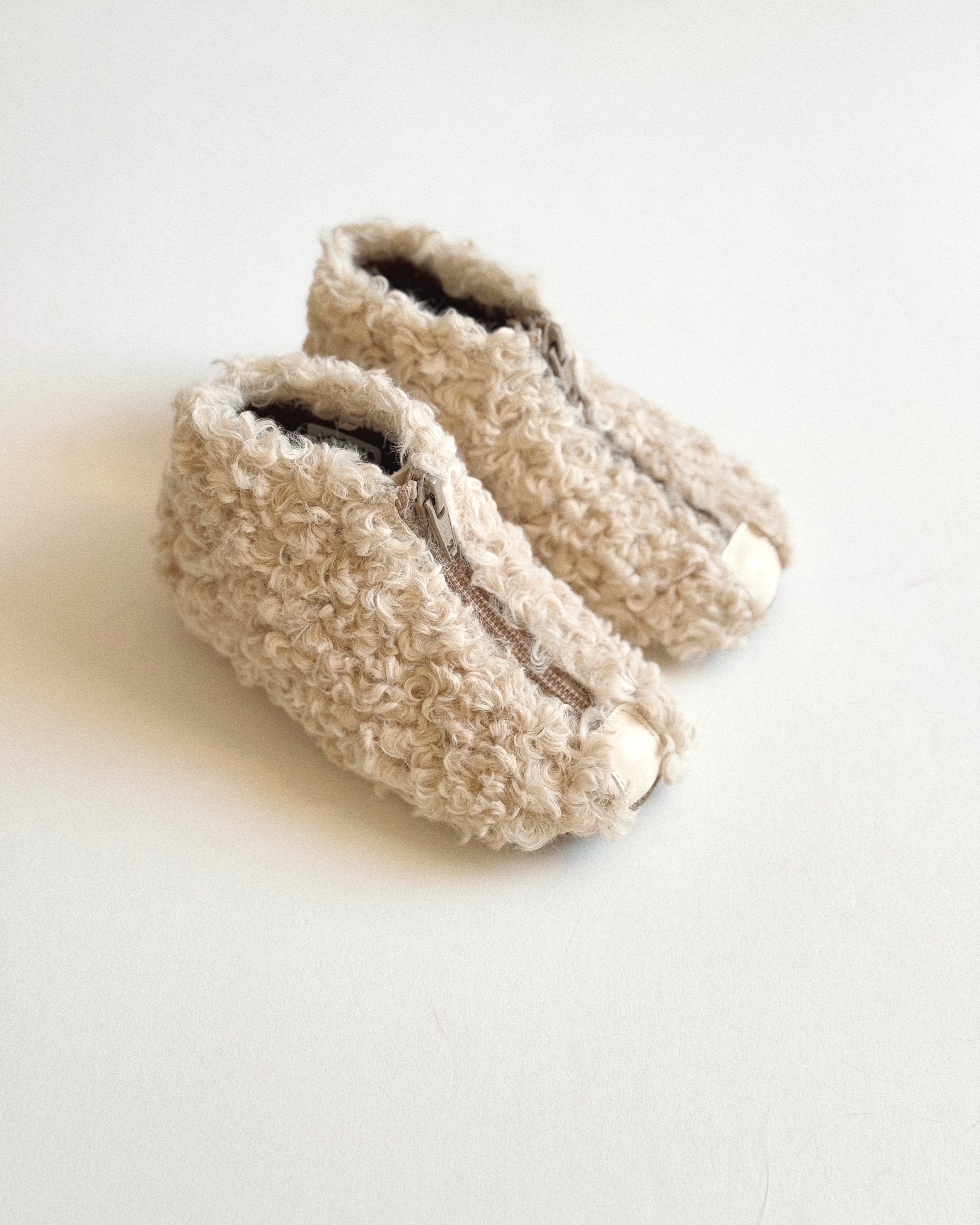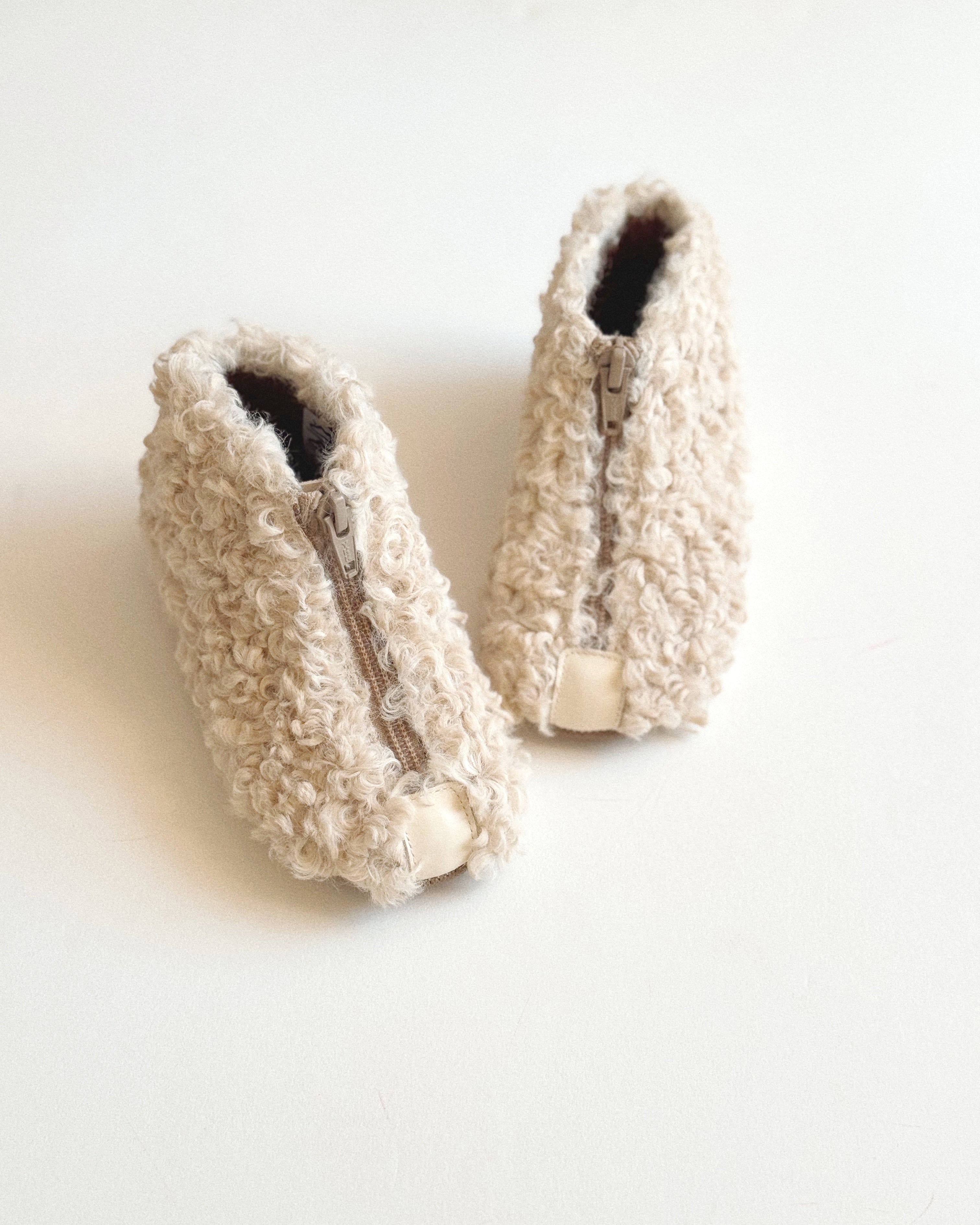 · Cozy ankle boot covered in soft curly shearling in beige