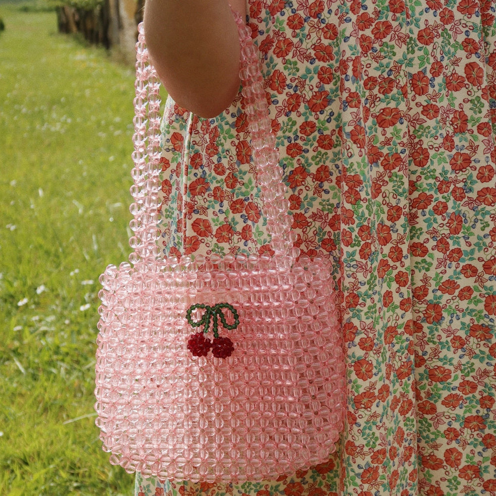 · Hand-beaded cherry motif adds a playful detail