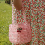 · Beaded mini bag with a delicate translucent pink finish