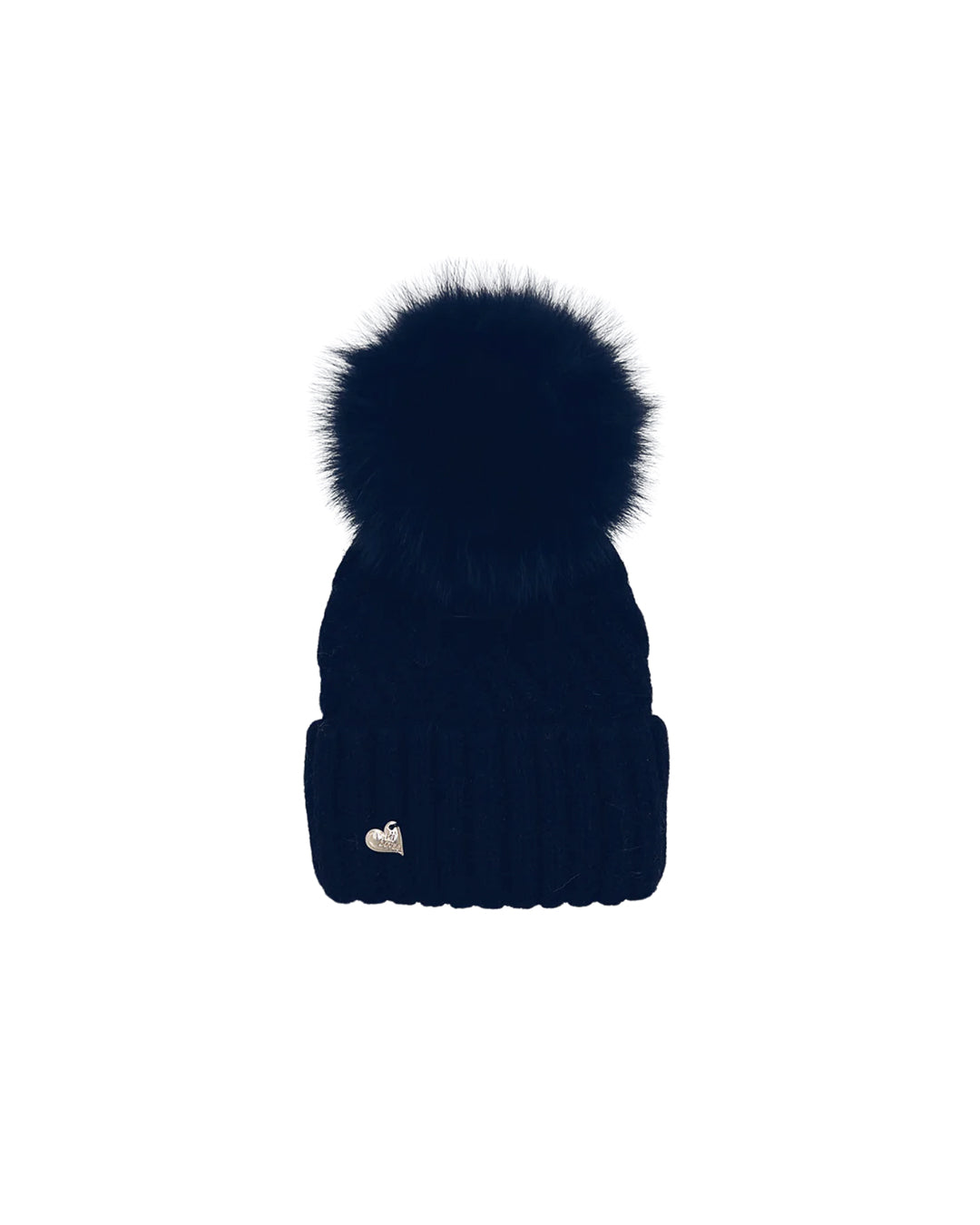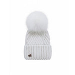 · Features a classic cable-knit design with a folded brim for extra warmth