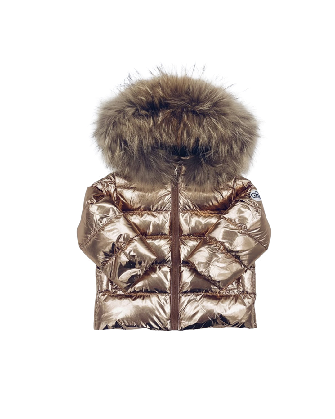 [Pre - Order] Mi Loves :: Racoon Fur Trim Puff Jacket in Gold
